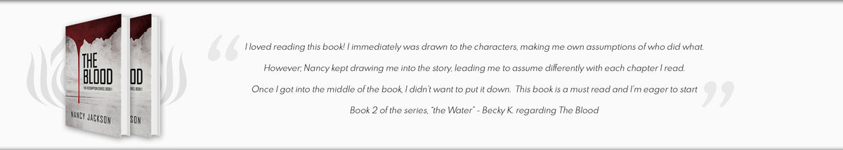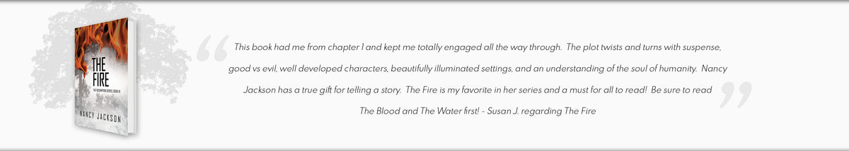 This book had me from chapter 1 and kept me totally engaged all the way through. The plot twists and turns with suspense, good vs evil, well developed characters, beautifully illuminated settings, and an understanding of the soul of humanity. Nancy Jackson has a true gift for telling a story. The Fire is my favorite in her series and a must for all to read! Be sure to read The Blood and The Water first!