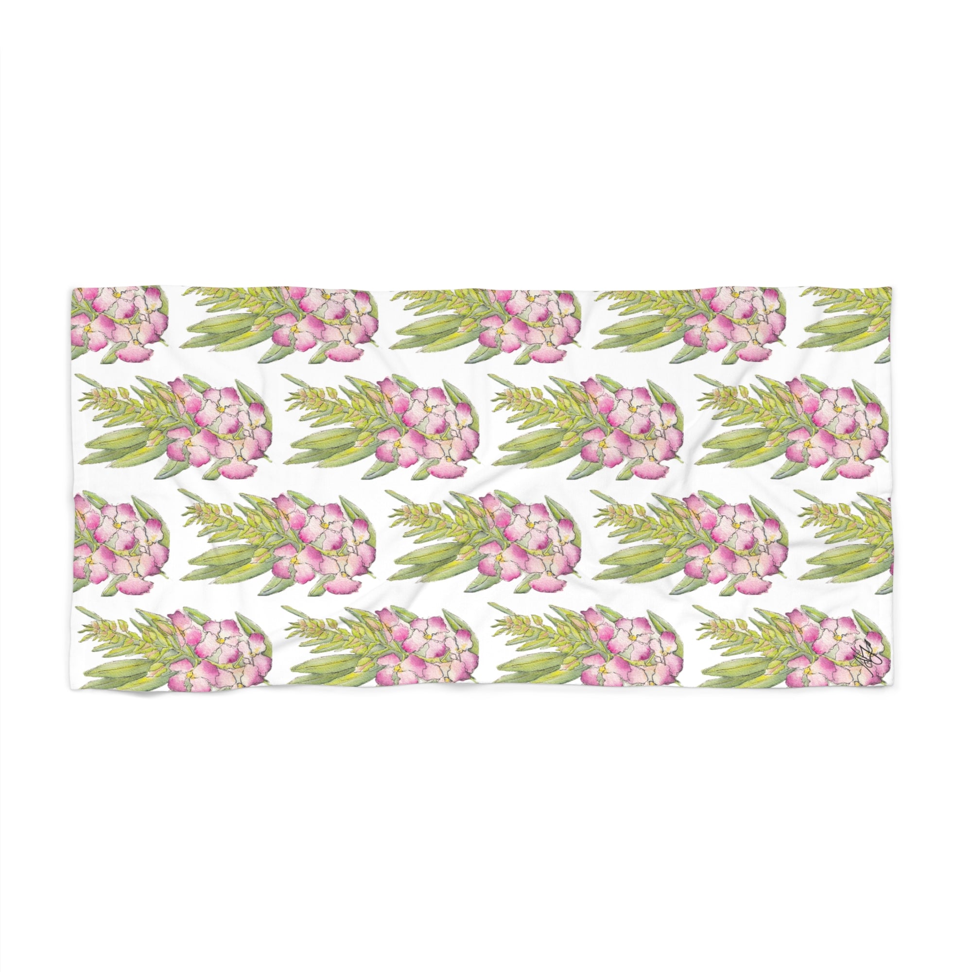 Designer Beach Towel with Full Pattern of El Nino Chitalpa Flowers