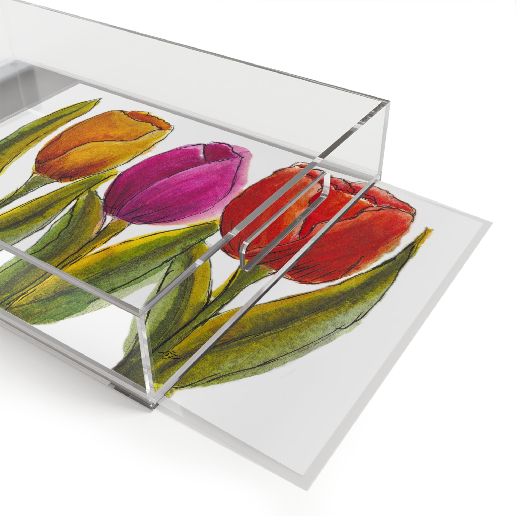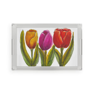 Designer Acrylic Serving Tray with a Bold Trio of Tulips