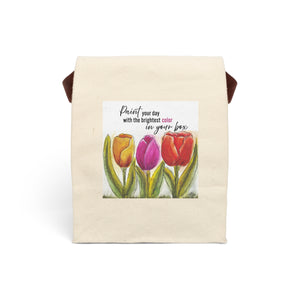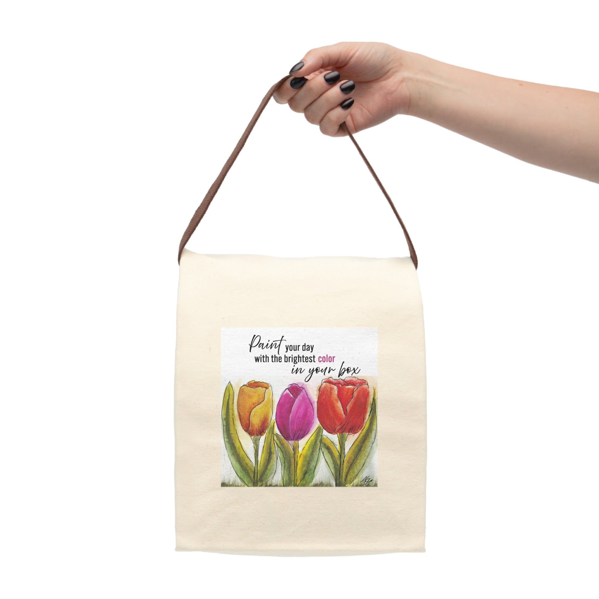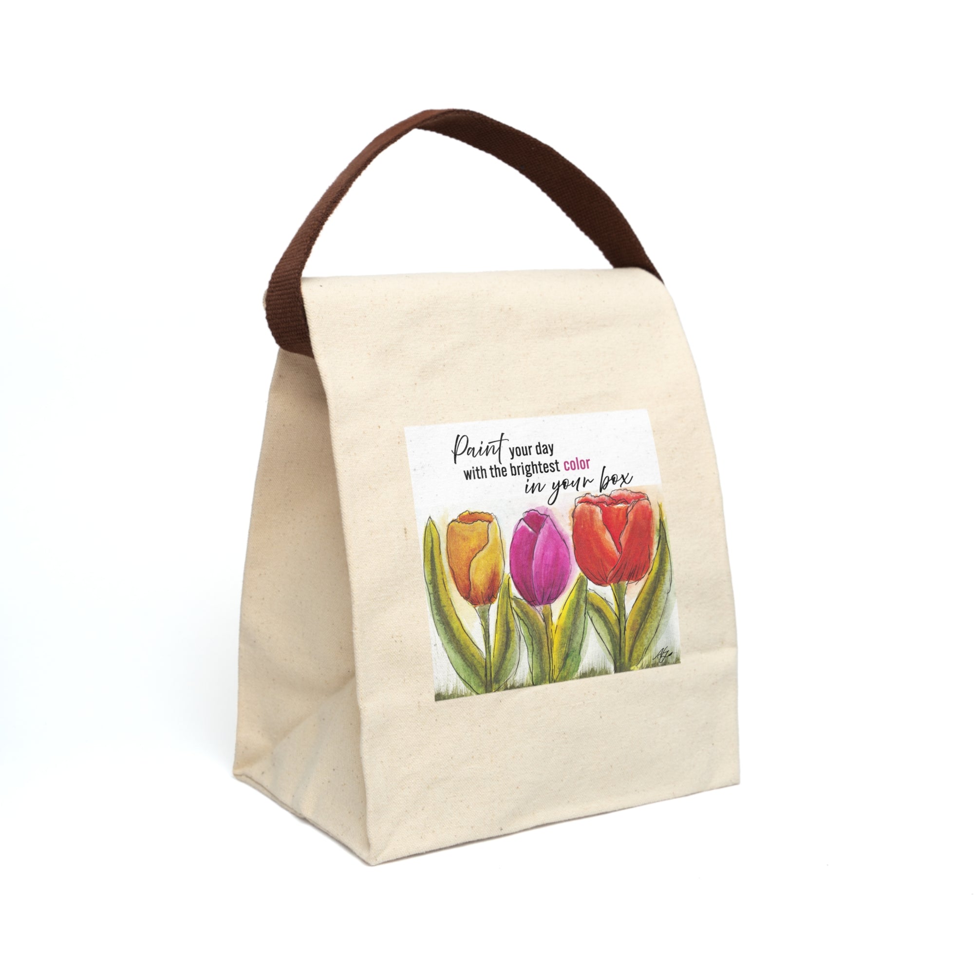 Designer Canvas Lunch Bag with a Trio of Tulips and Quote