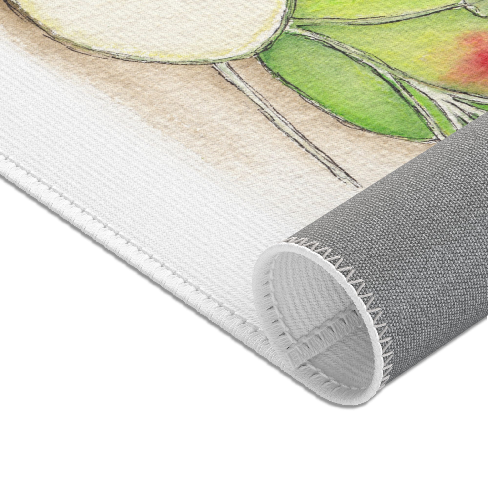 Introduce vibrancy and warmth to your living space with this stunning area rug. Its enchanting design, featuring an artistic display of fruits and inspirational text, captivates the heart and invites positivity. Imagine stepping into your home and being greeted by a splash of cheerful colors, evoking feelings of comfort and joy.