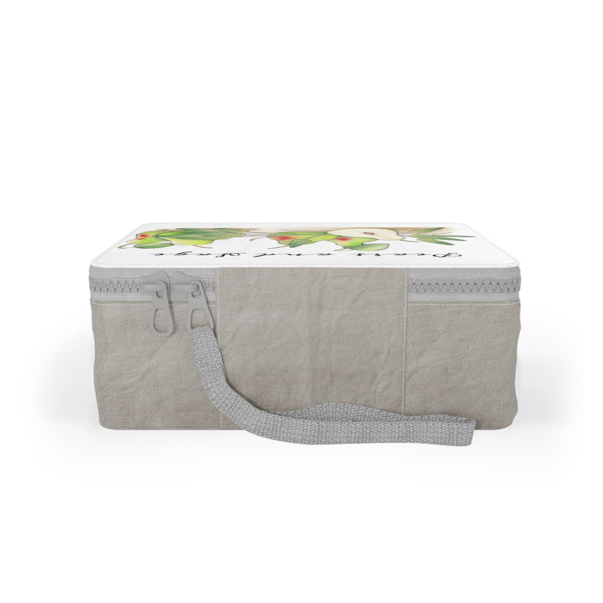 Product features - Zipper carrying strap for easy transport - Durable zipper closure ensures safe storage - Unique design options for stylish food storage - Vibrant colors with crisp prints for a standout look - Crafted from paper and cotton for durability and style Care instructions - Wipe with a damp cloth, air dry or use a soft, non-abrasive cloth