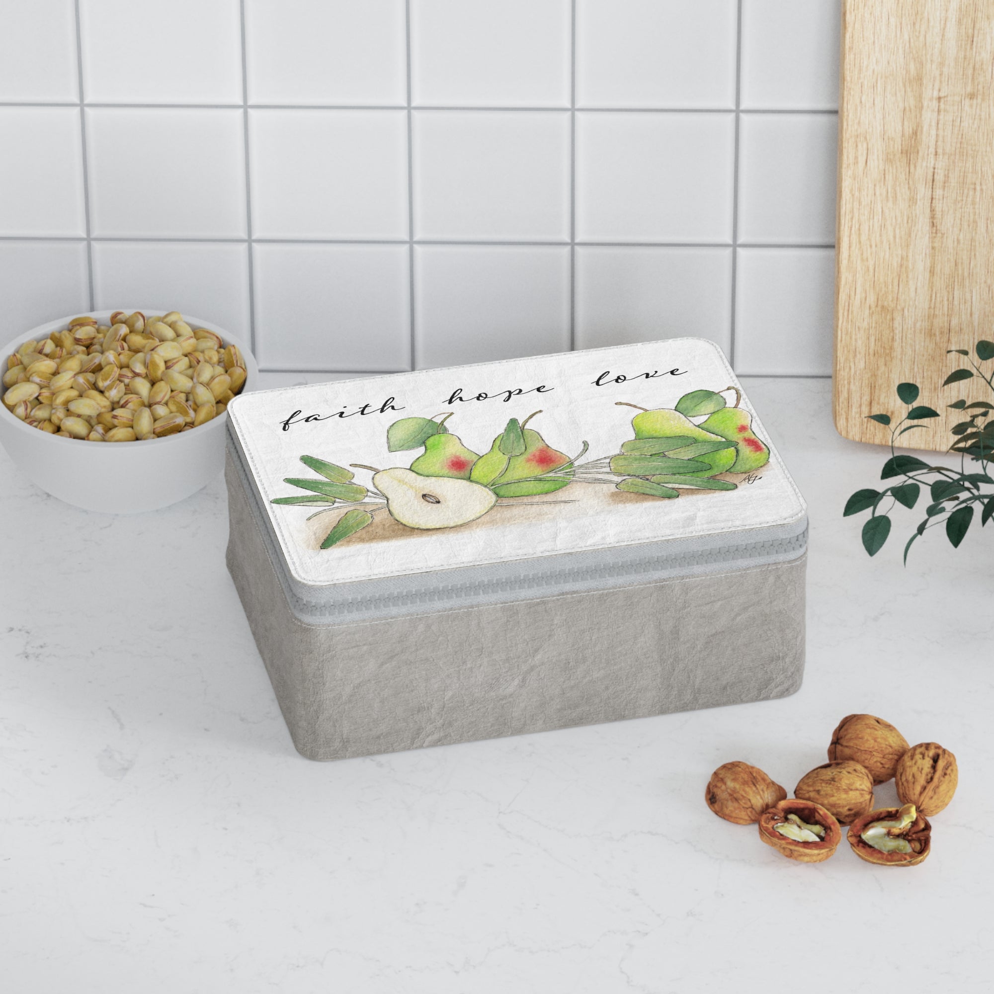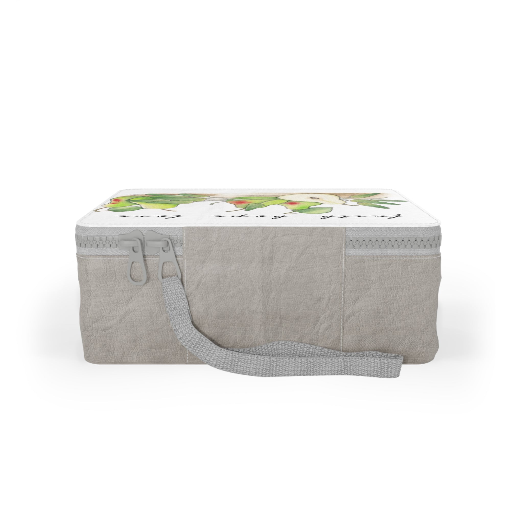 Product features - Zipper carrying strap for easy transport - Durable zipper closure ensures safe storage - Unique design options for stylish food storage - Vibrant colors with crisp prints for a standout look - Crafted from paper and cotton for durability and style Care instructions - Wipe with a damp cloth, air dry or use a soft, non-abrasive cloth