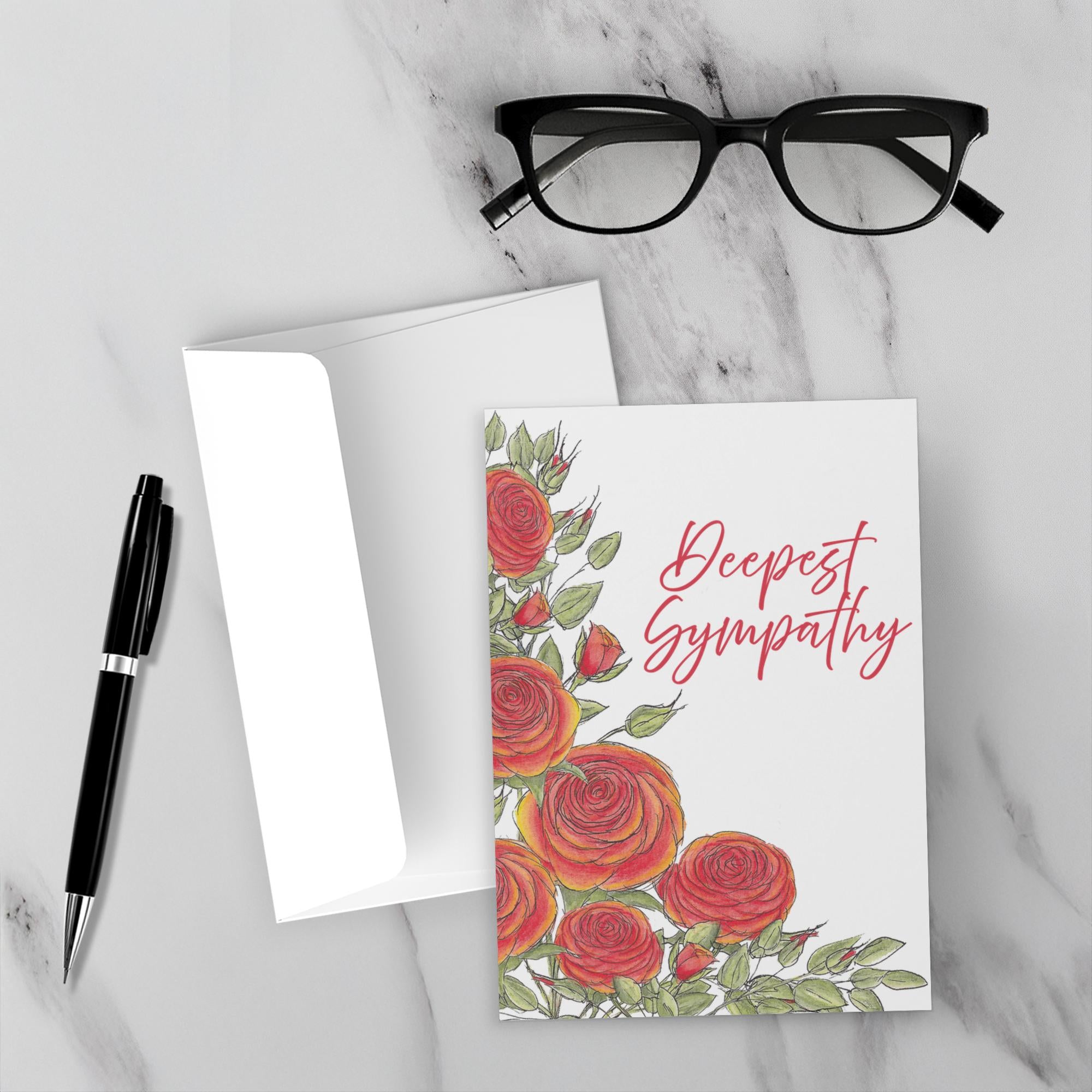 Folded Cards - Orange Roses - Deepest Sympathy