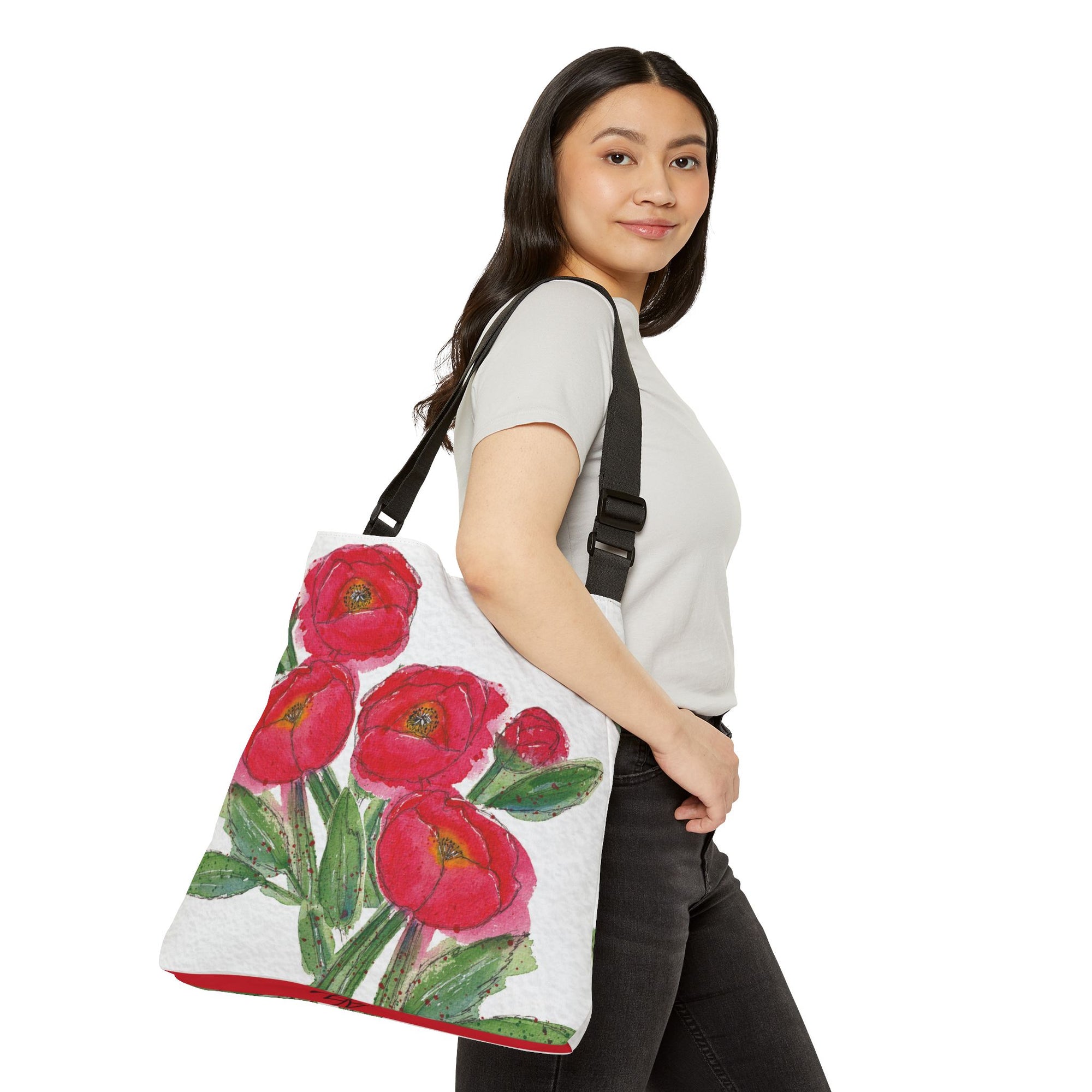 Designer Floral Tote Bag with Vibrant Red Poppies