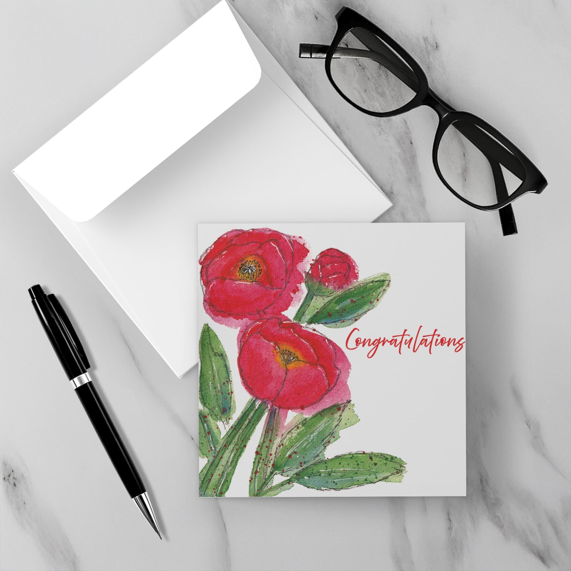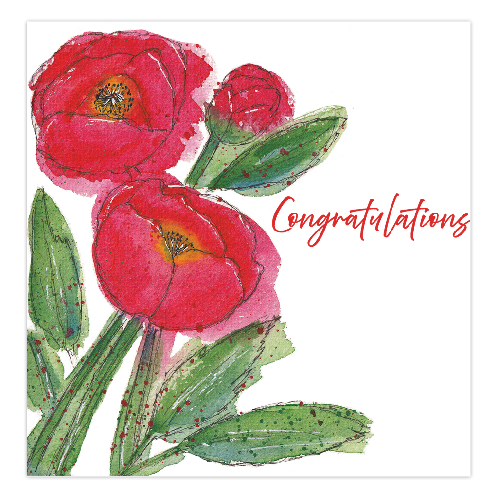 Folded Cards - Red Poppies - Congratulations