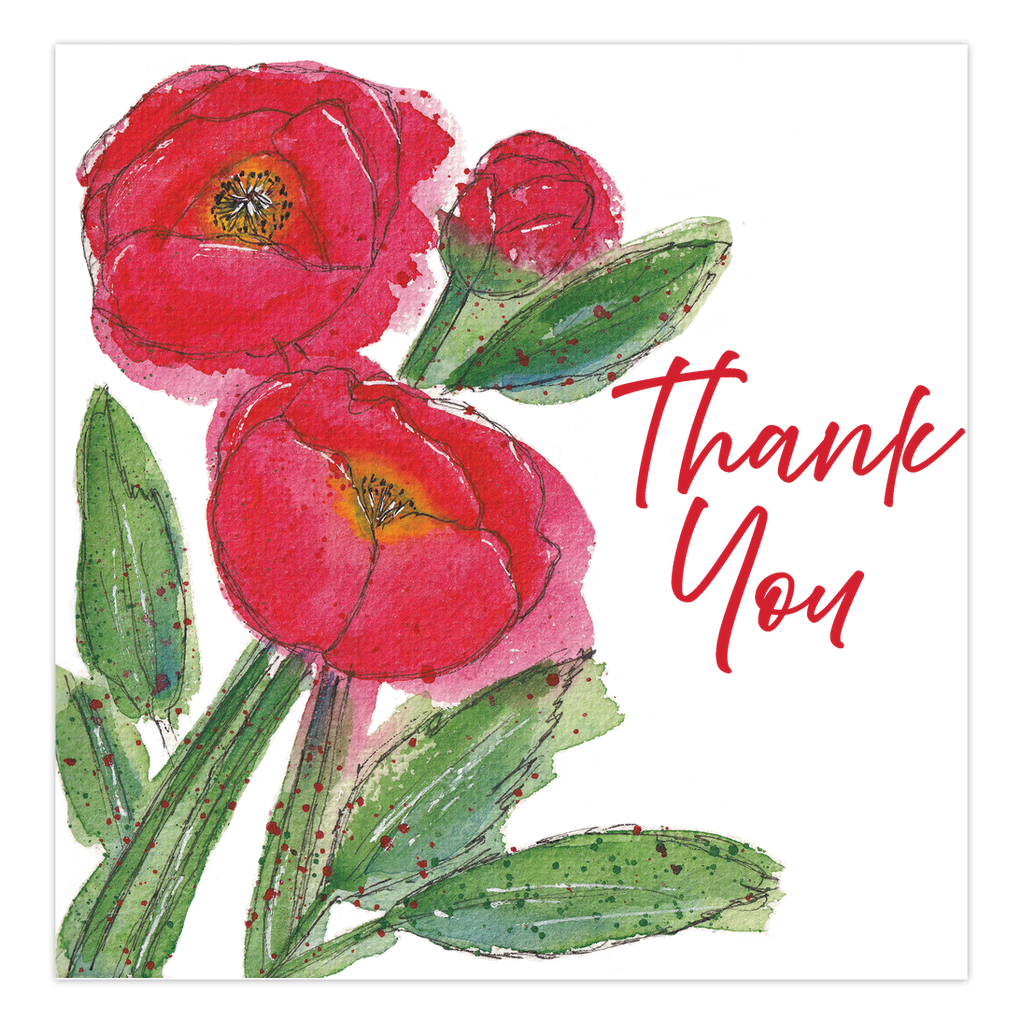 Folded Cards - Red Poppies - Thank You