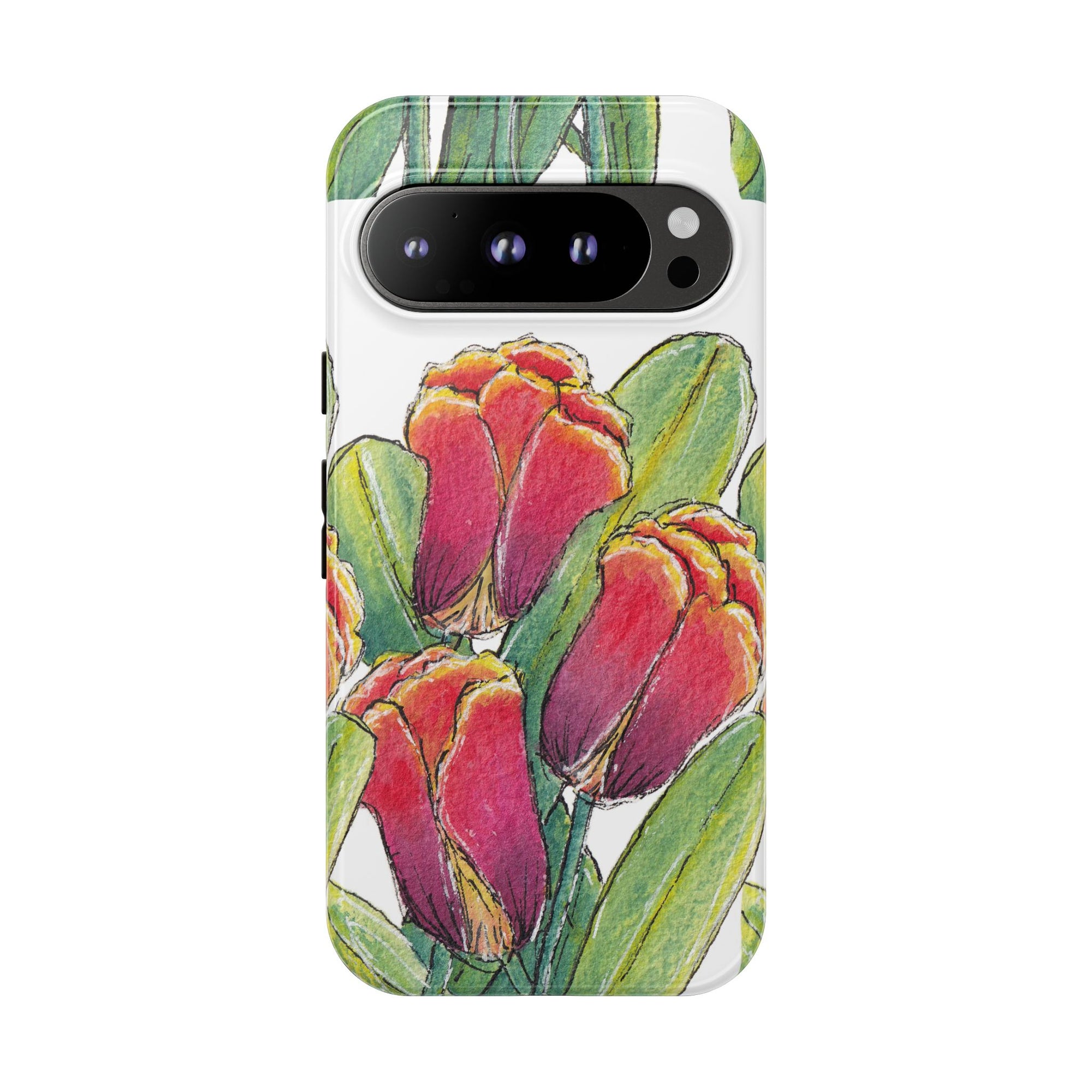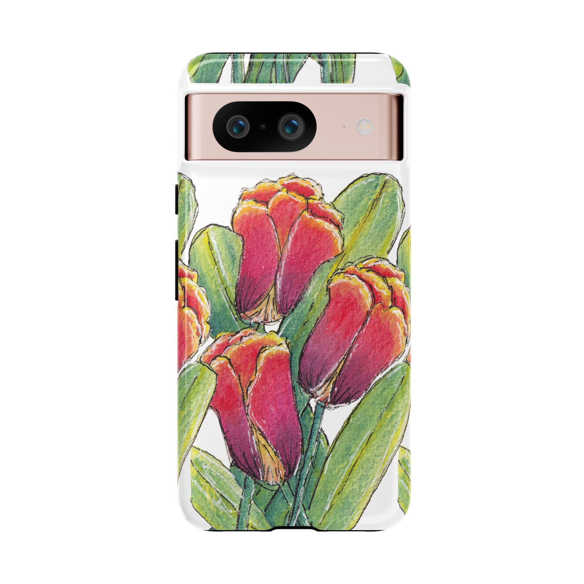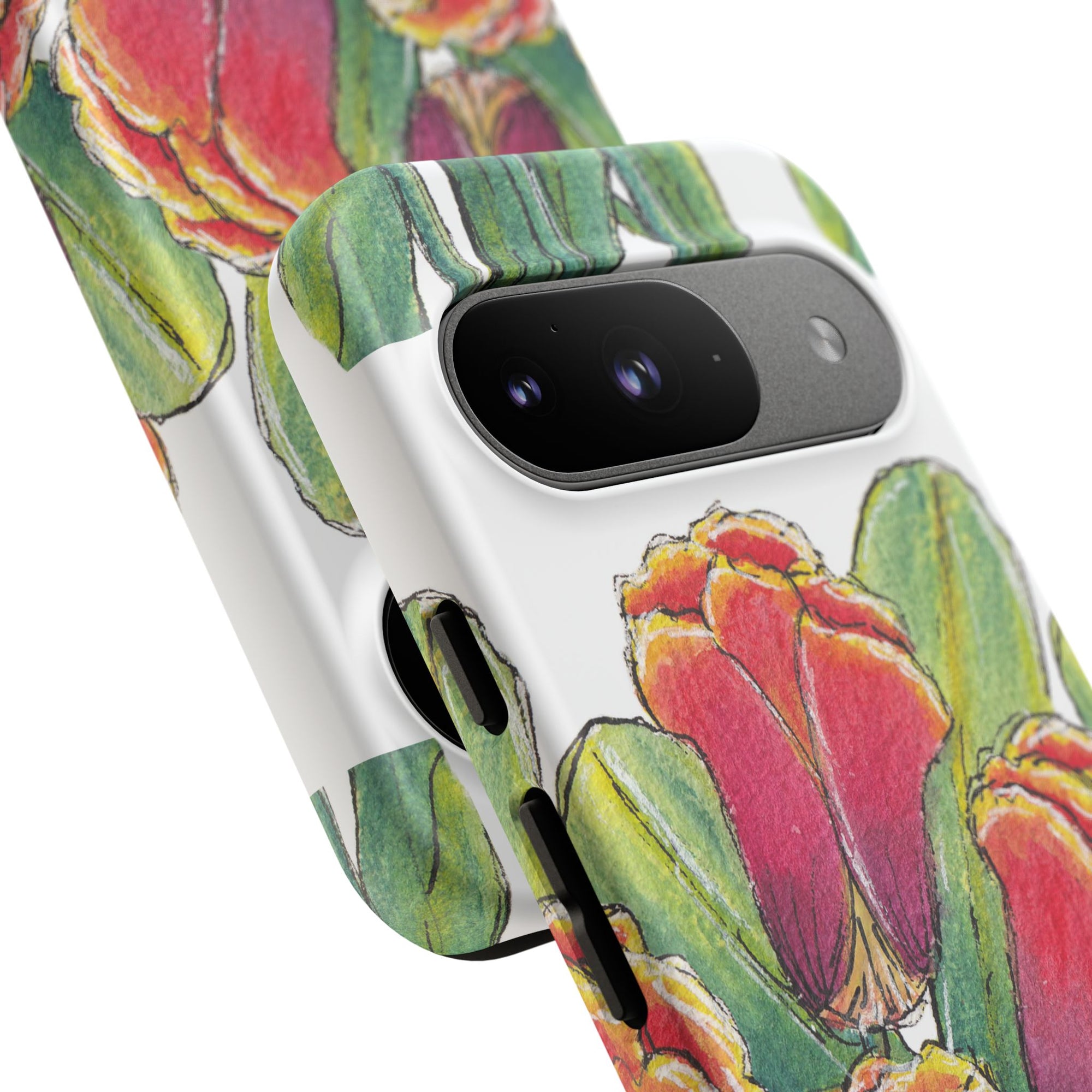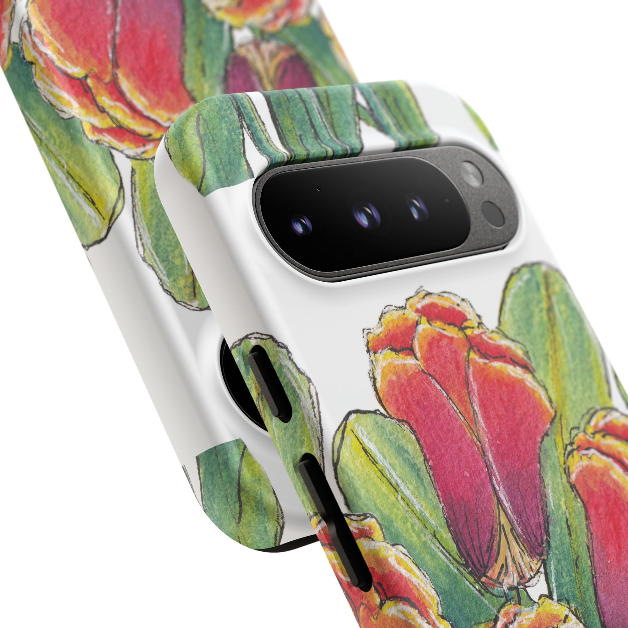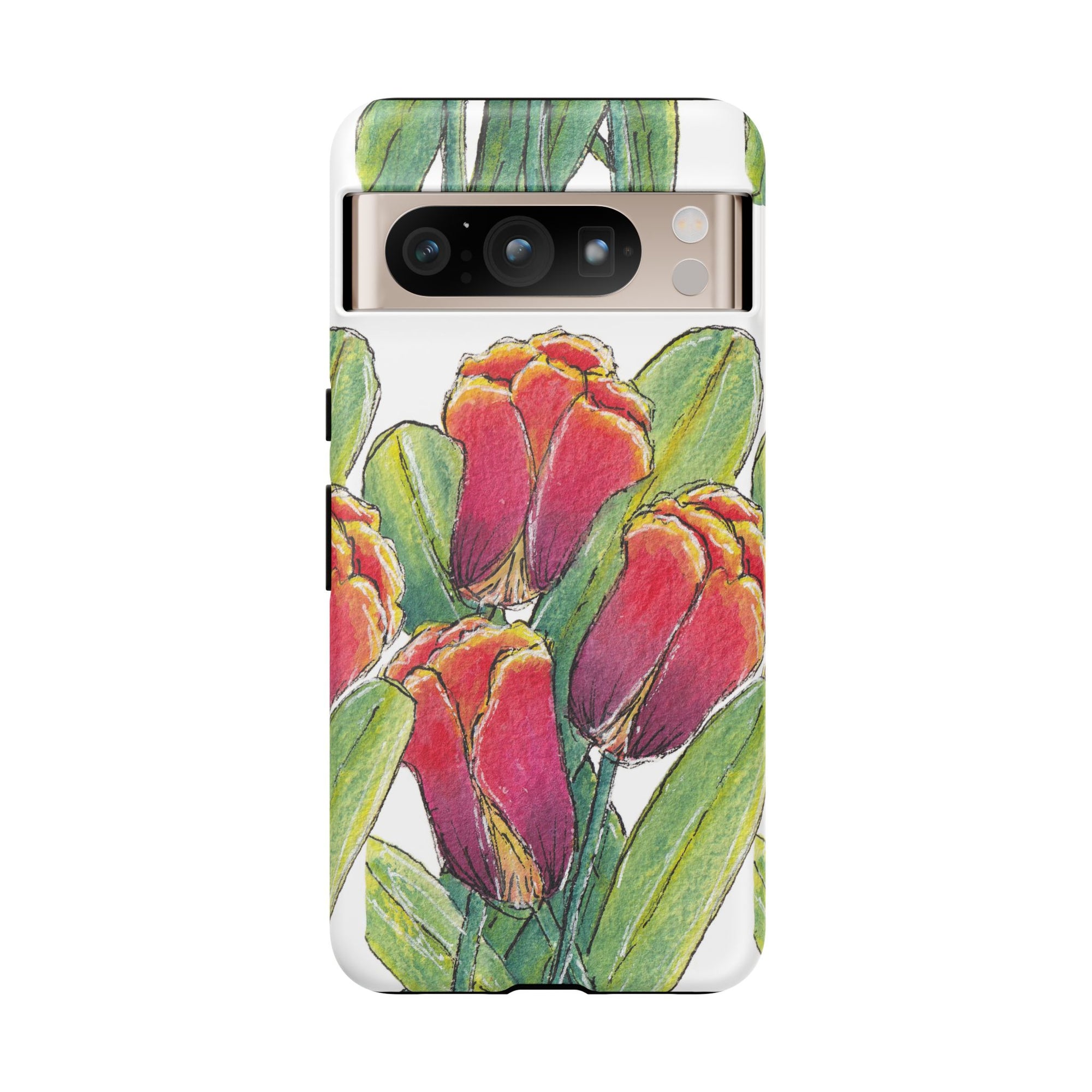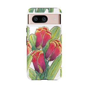 This is an exclusive Nancy Jackson original art design of clusters of bold tulips.