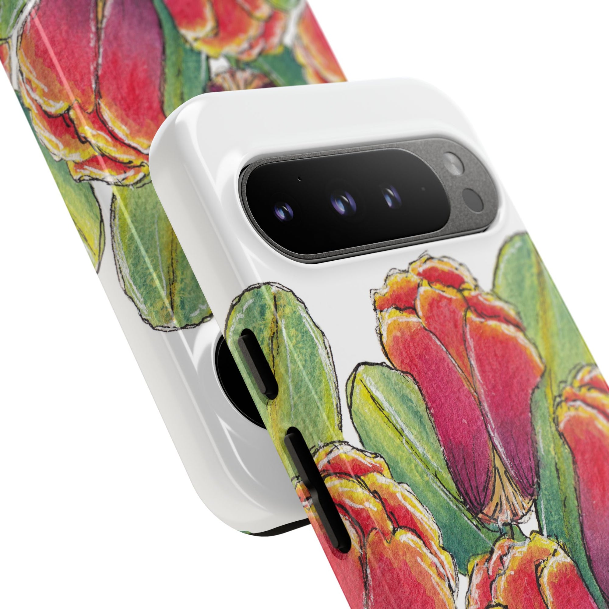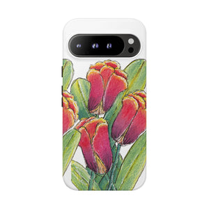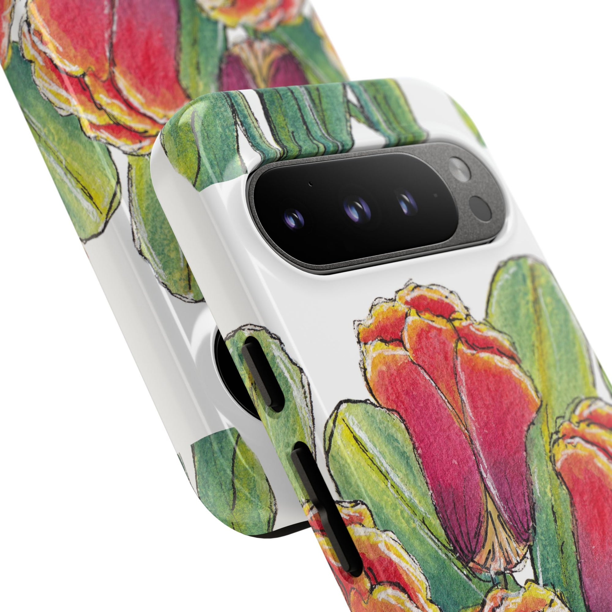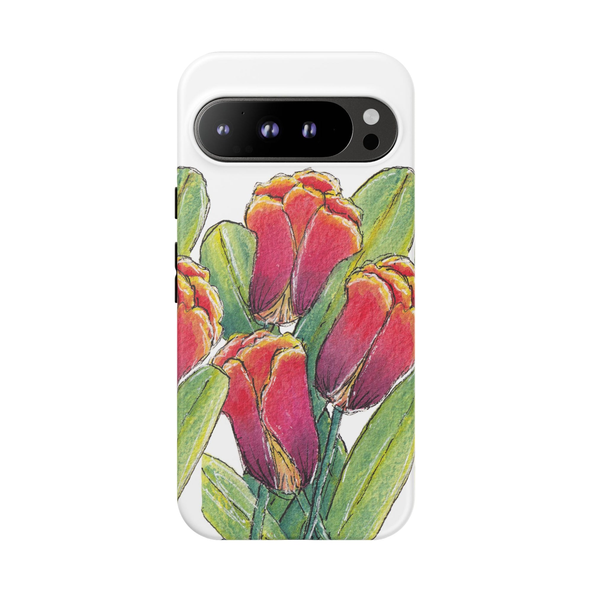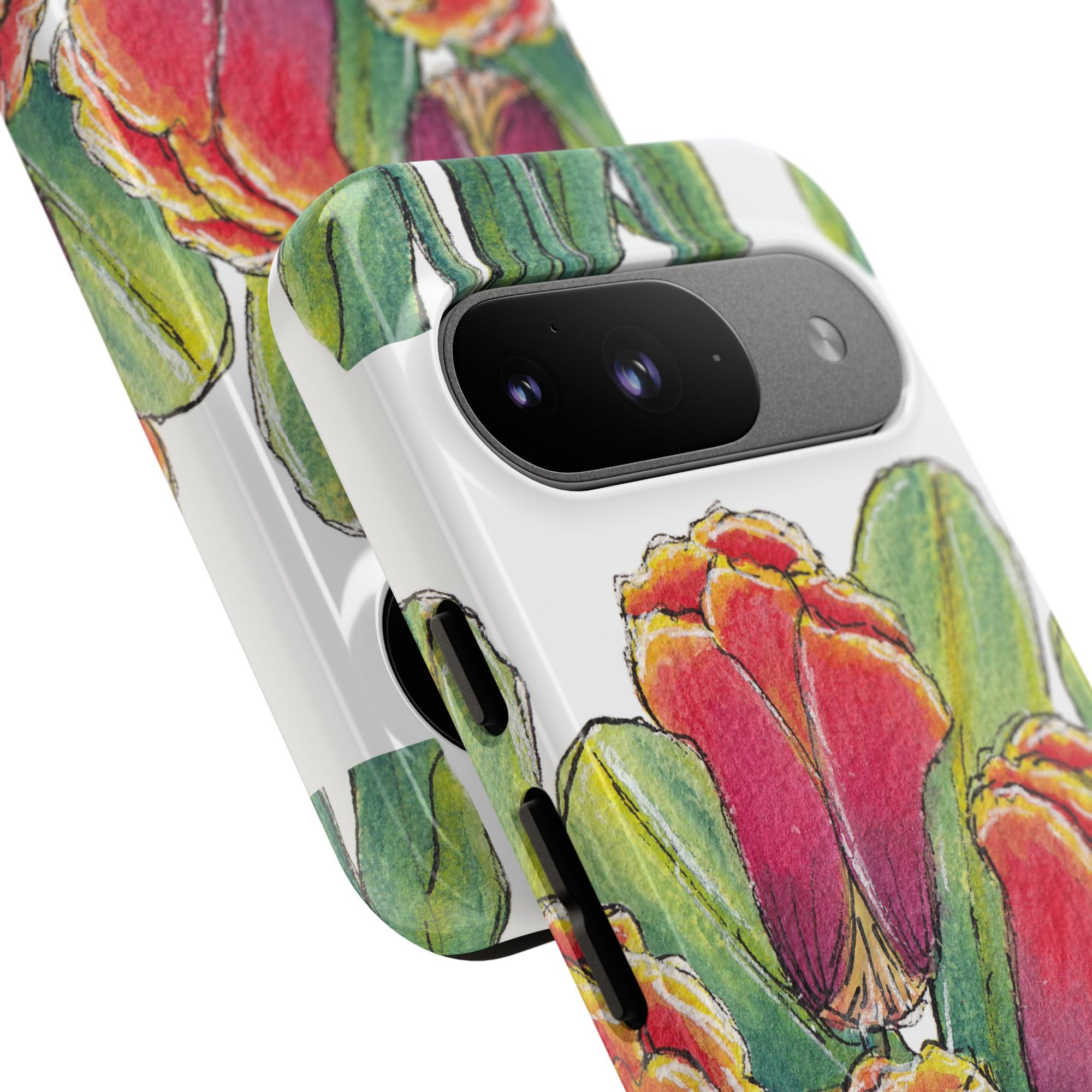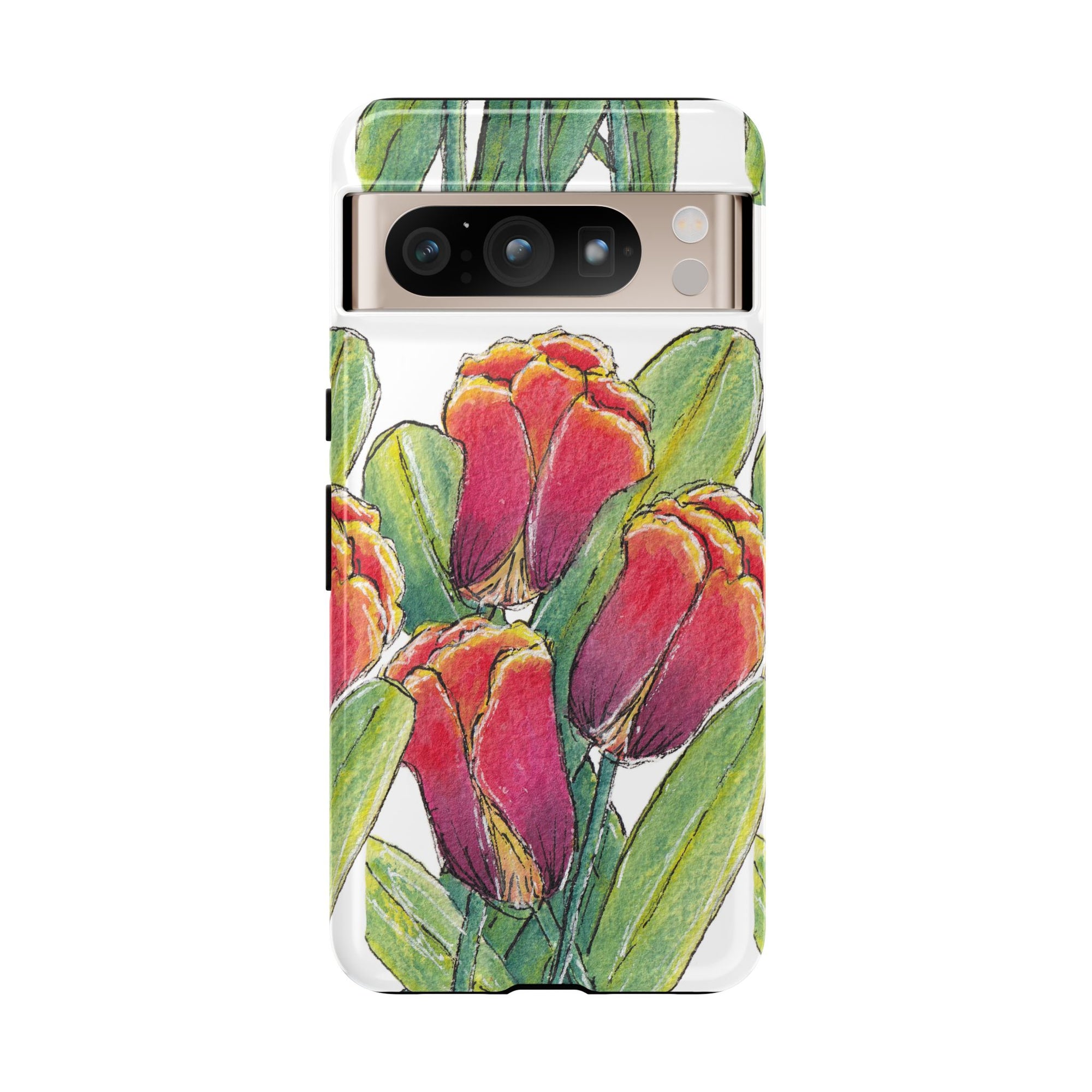 This is an exclusive Nancy Jackson original art design of clusters of bold tulips.