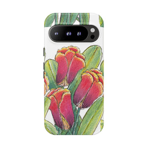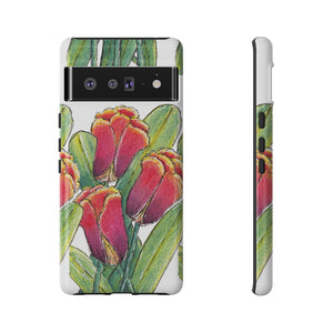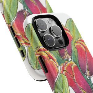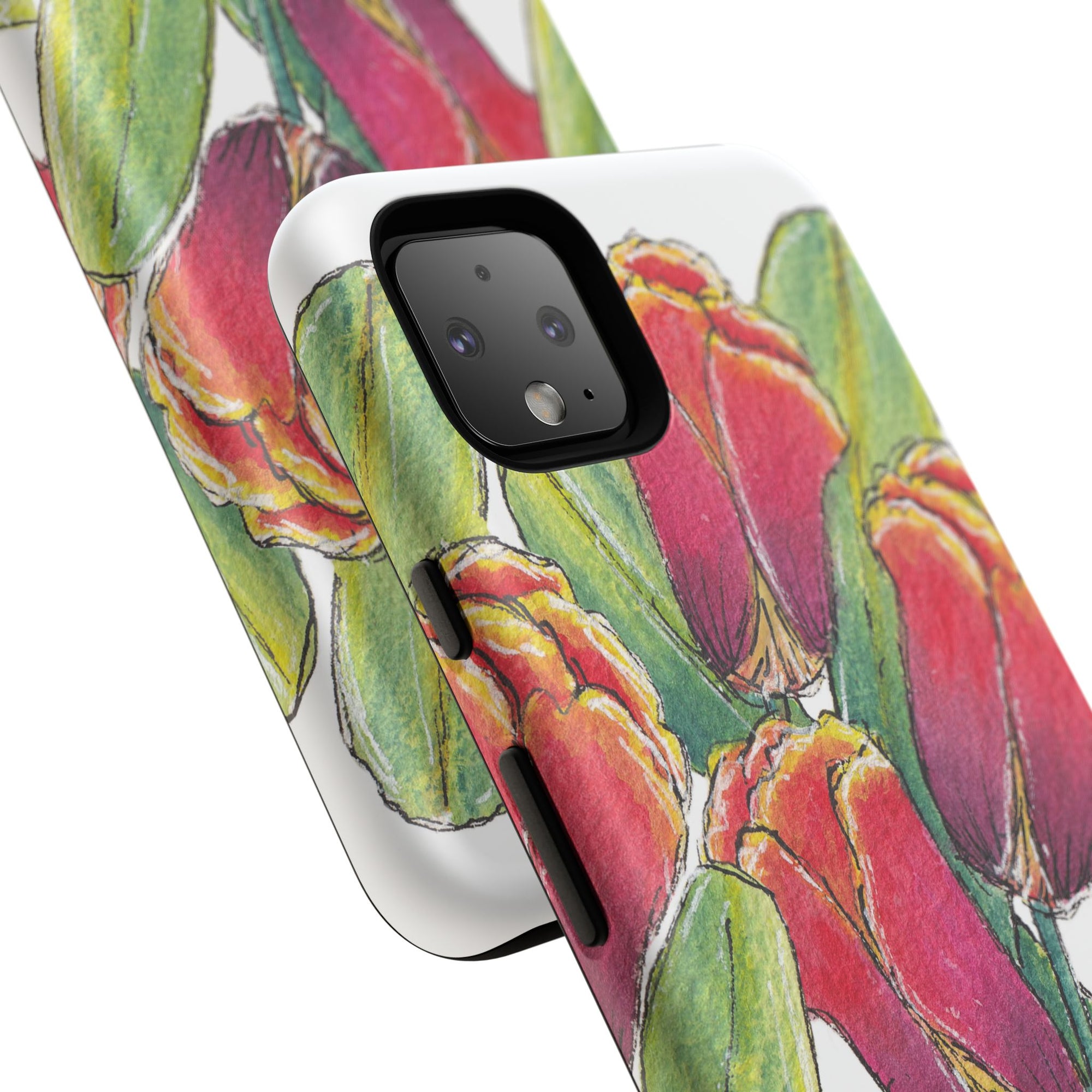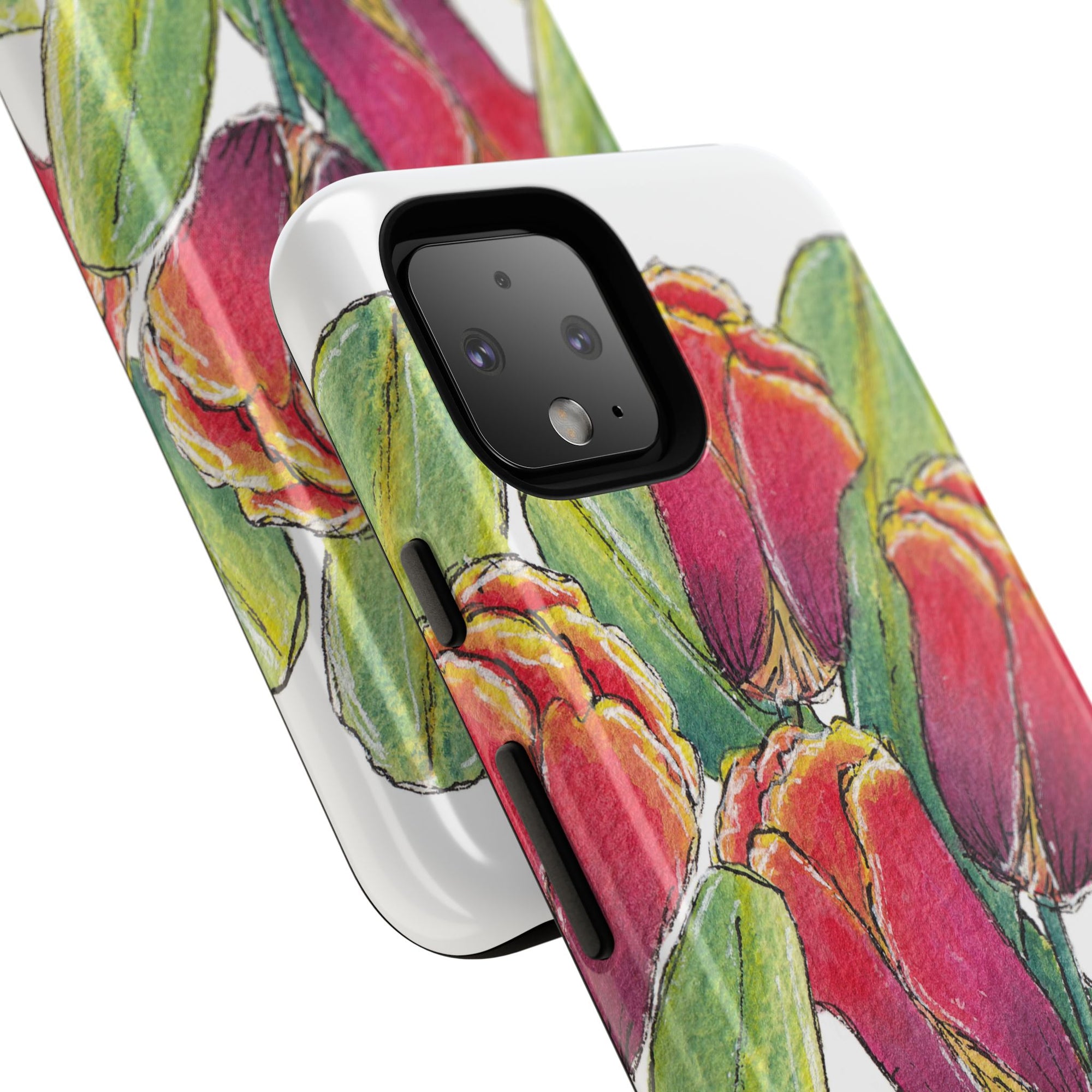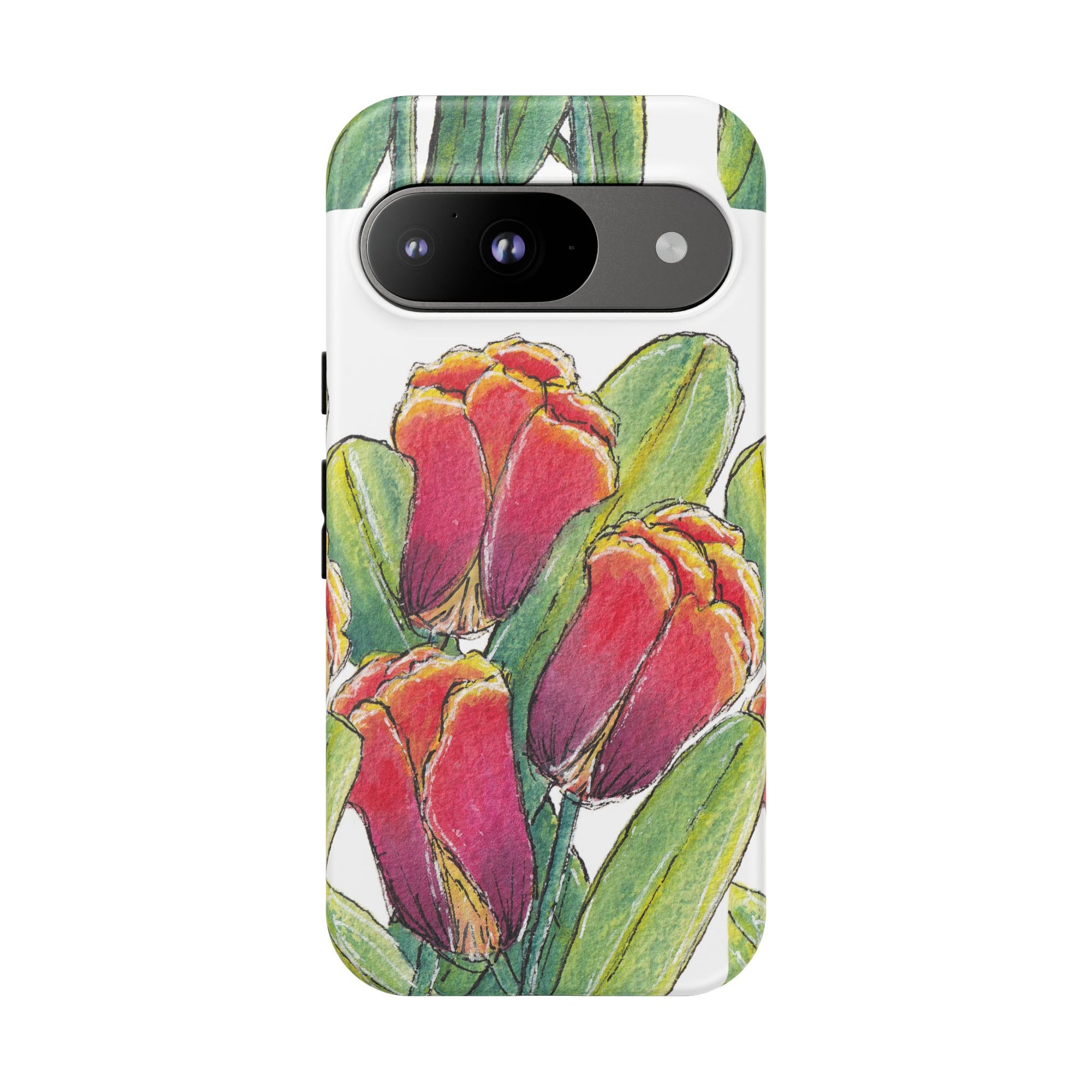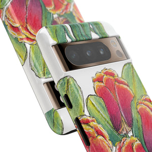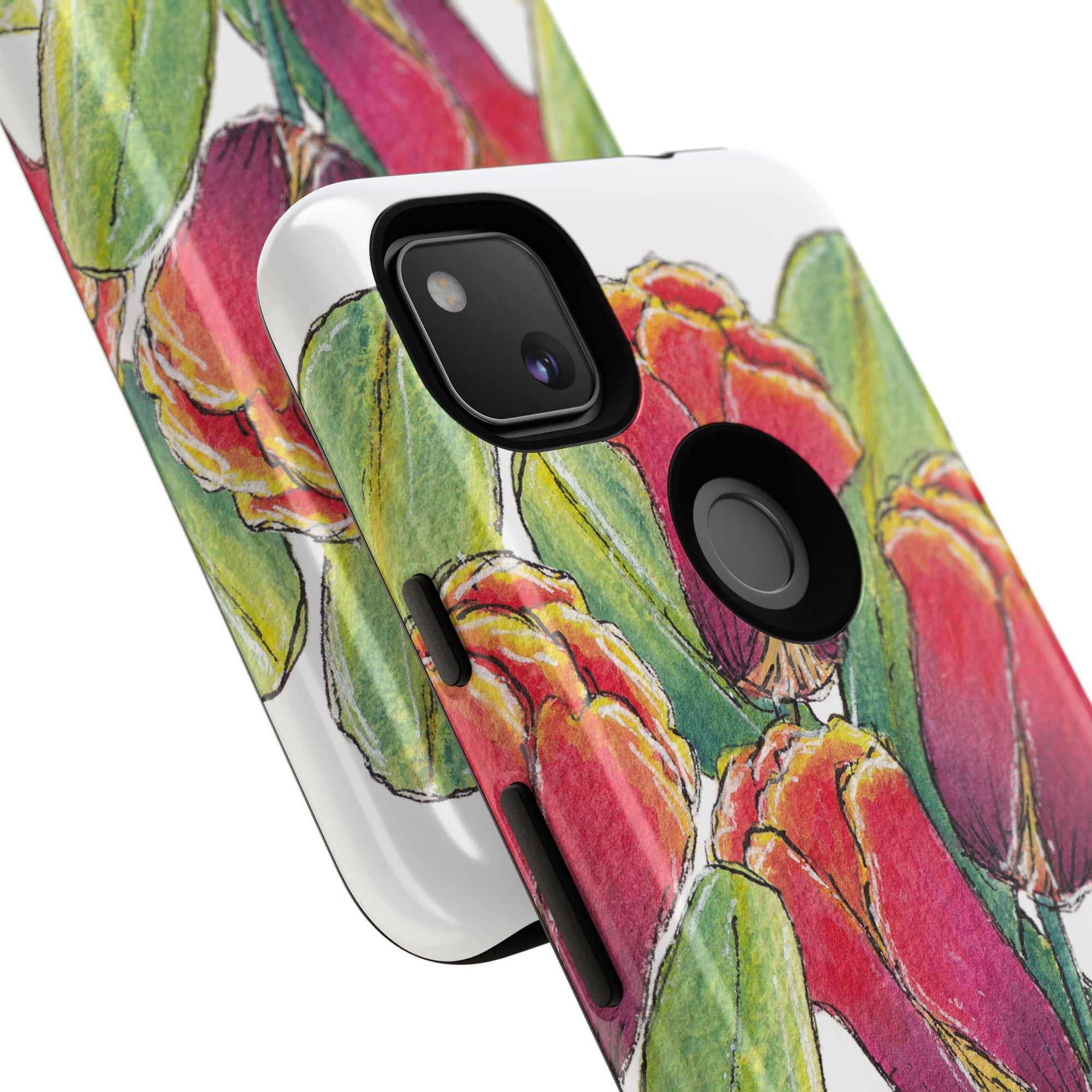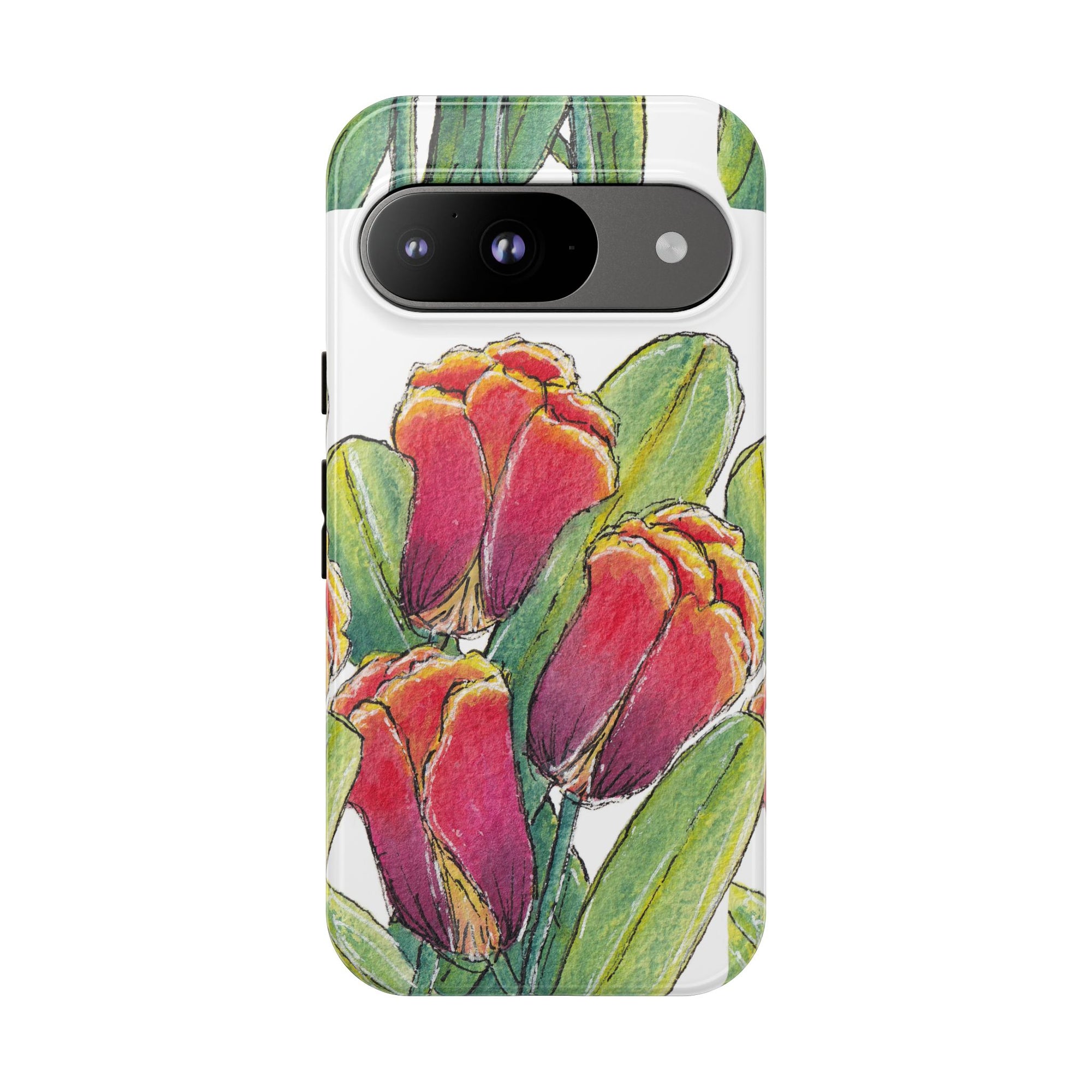 This is an exclusive Nancy Jackson original art design of clusters of bold tulips.