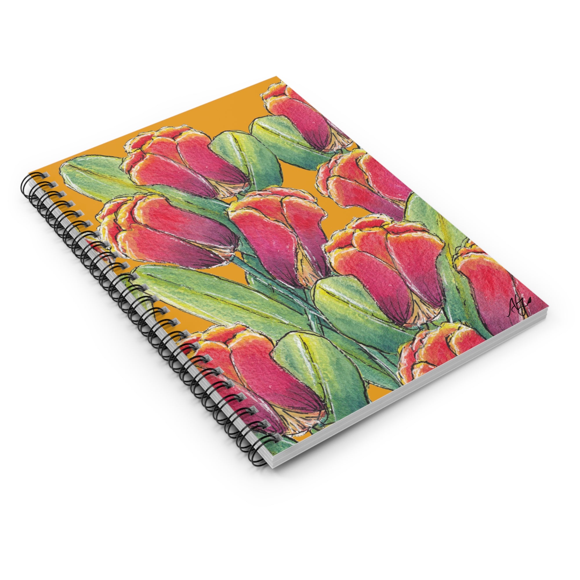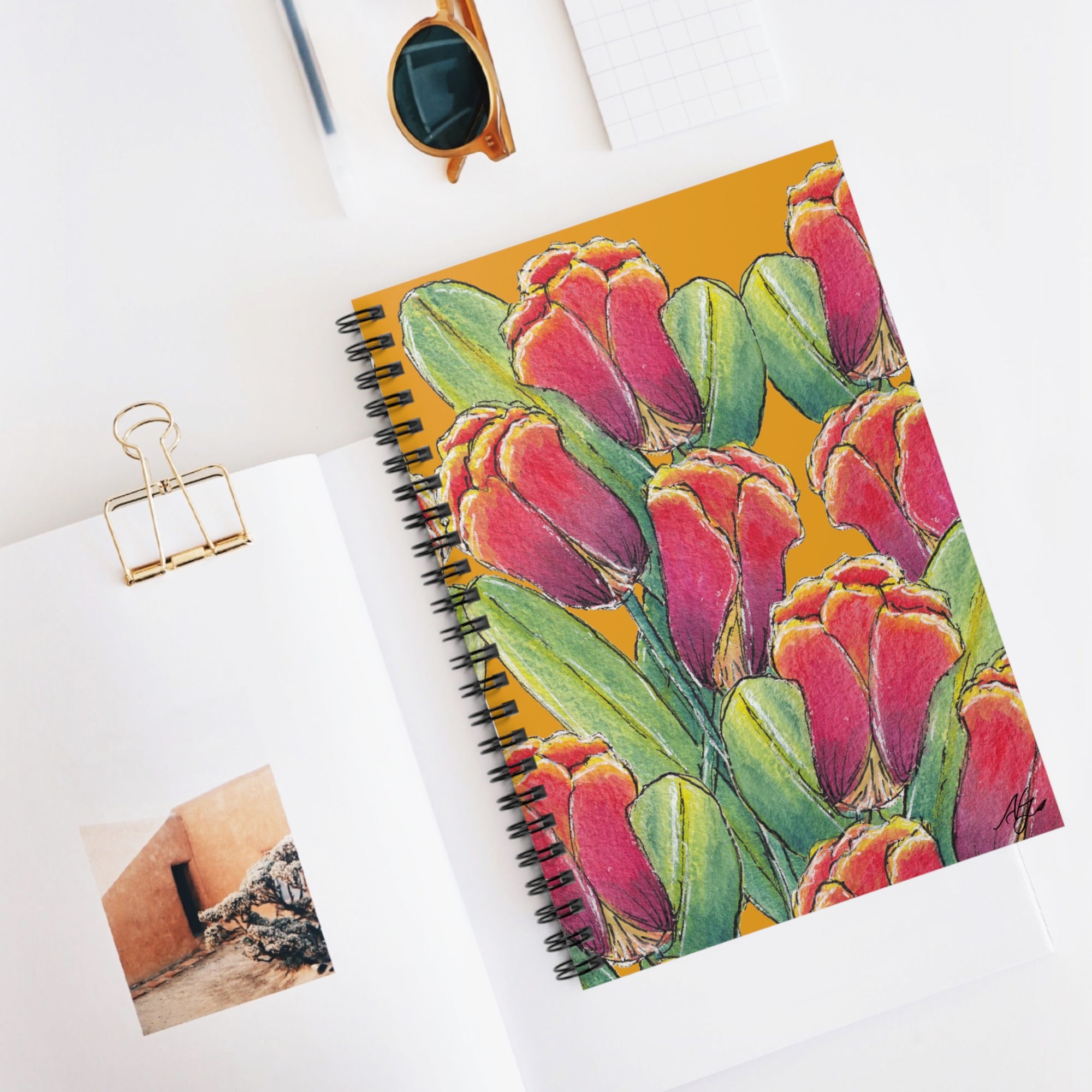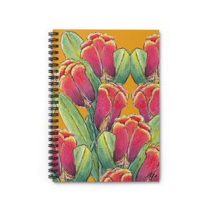 Designer Floral Spiral Notebook with Tulip Clusters on Gold