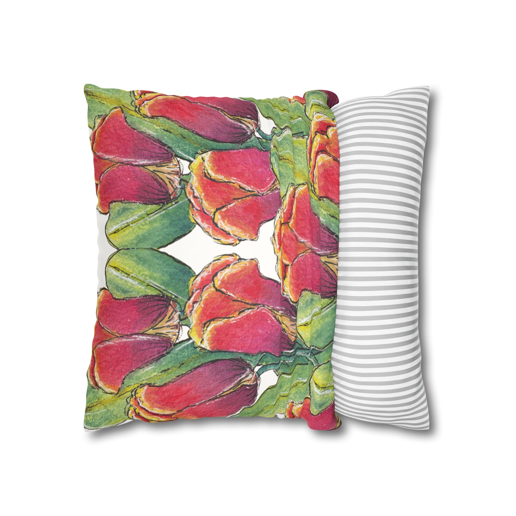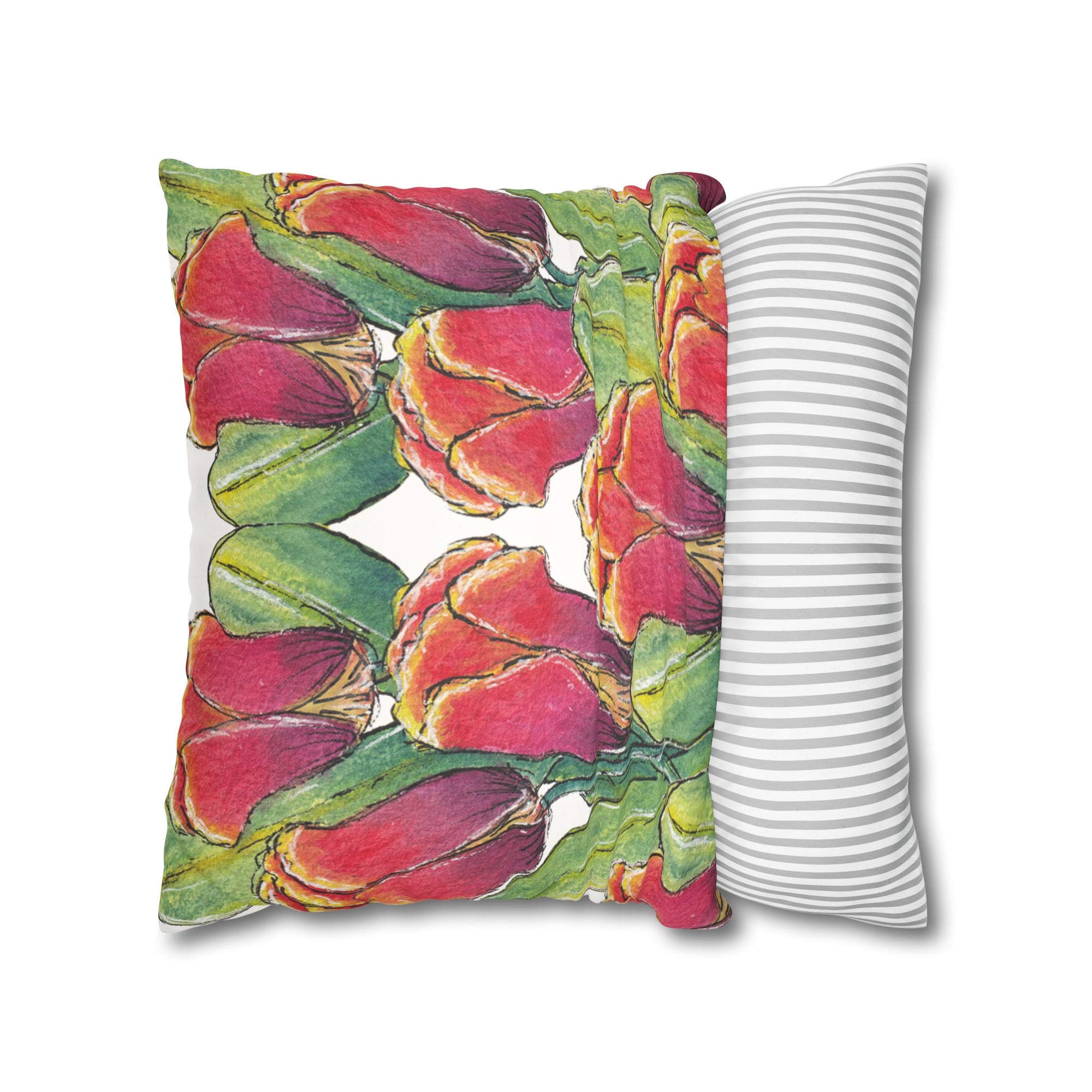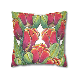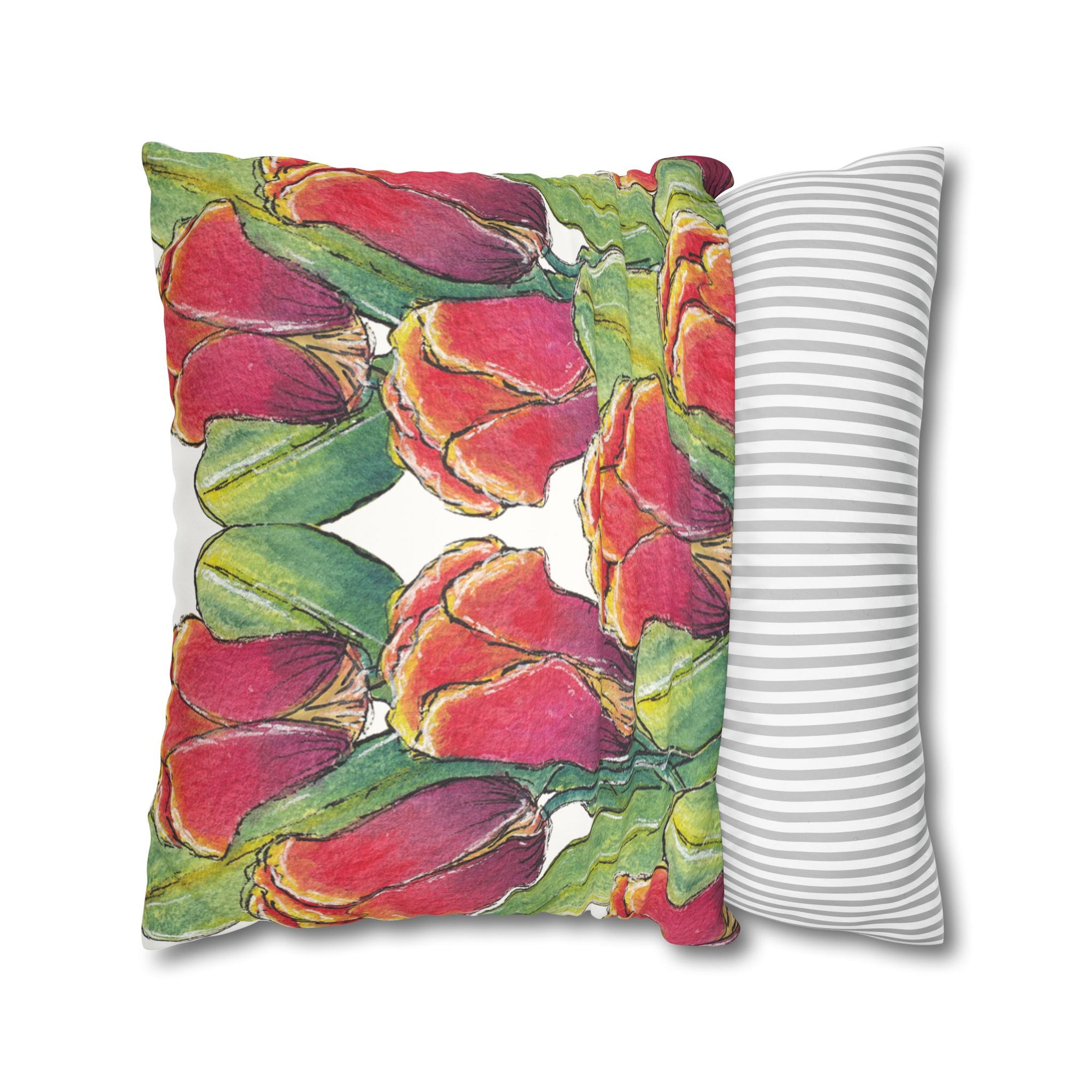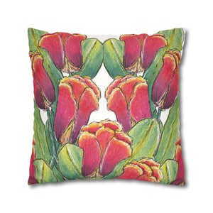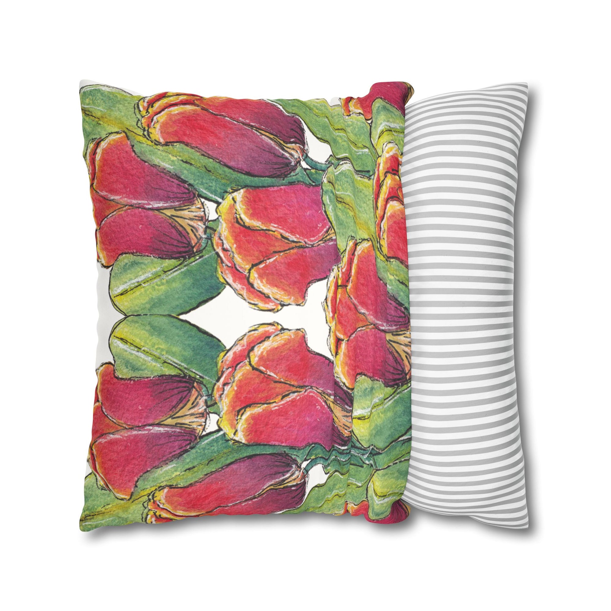 This is an exclusive Nancy Jackson original art design of bright tulip clusters. This pillow case only (pillow not included) comes in multiple sizes to fit your need. Add a bold pop of color to your living space.
