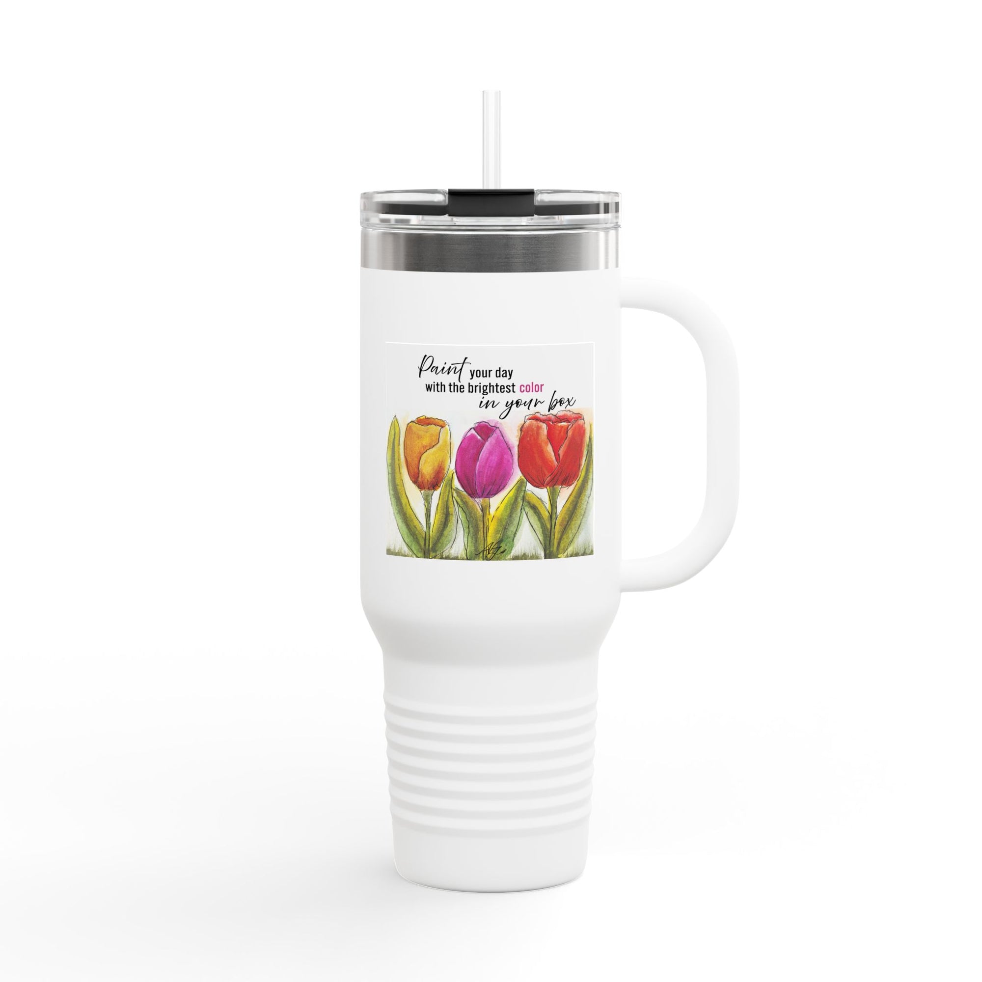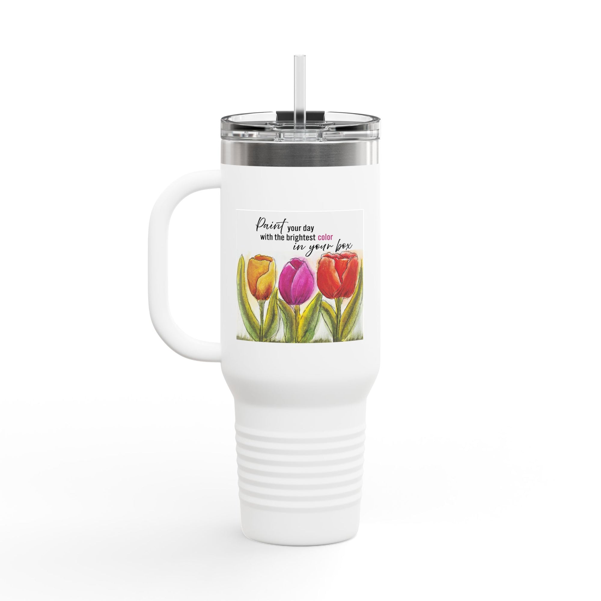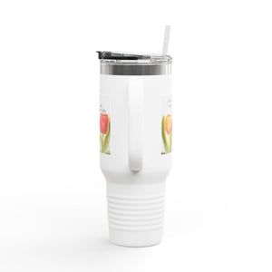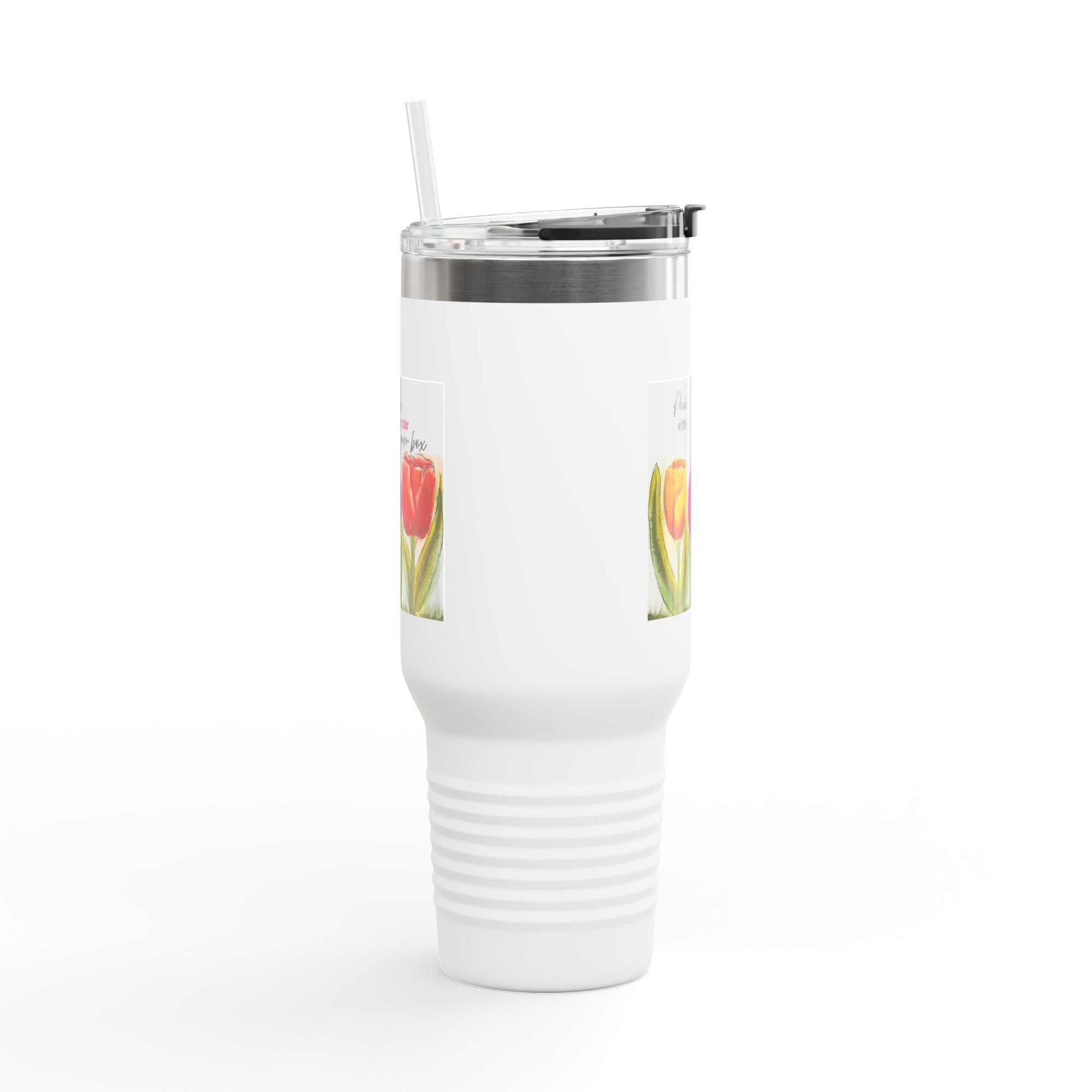 Designer Floral Insulated Travel Mug, 40oz, with a Trio of Tulips