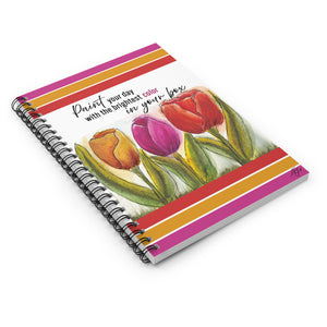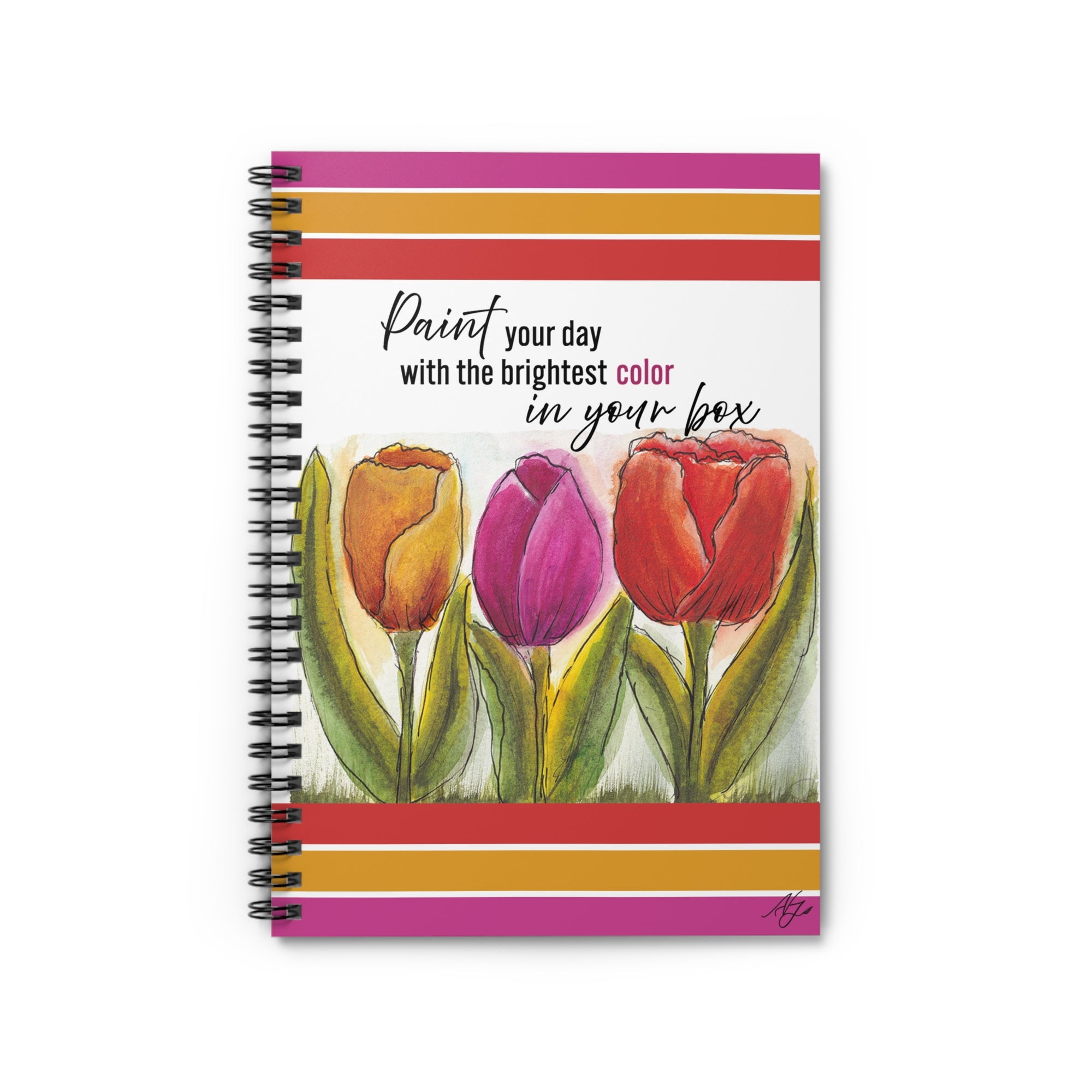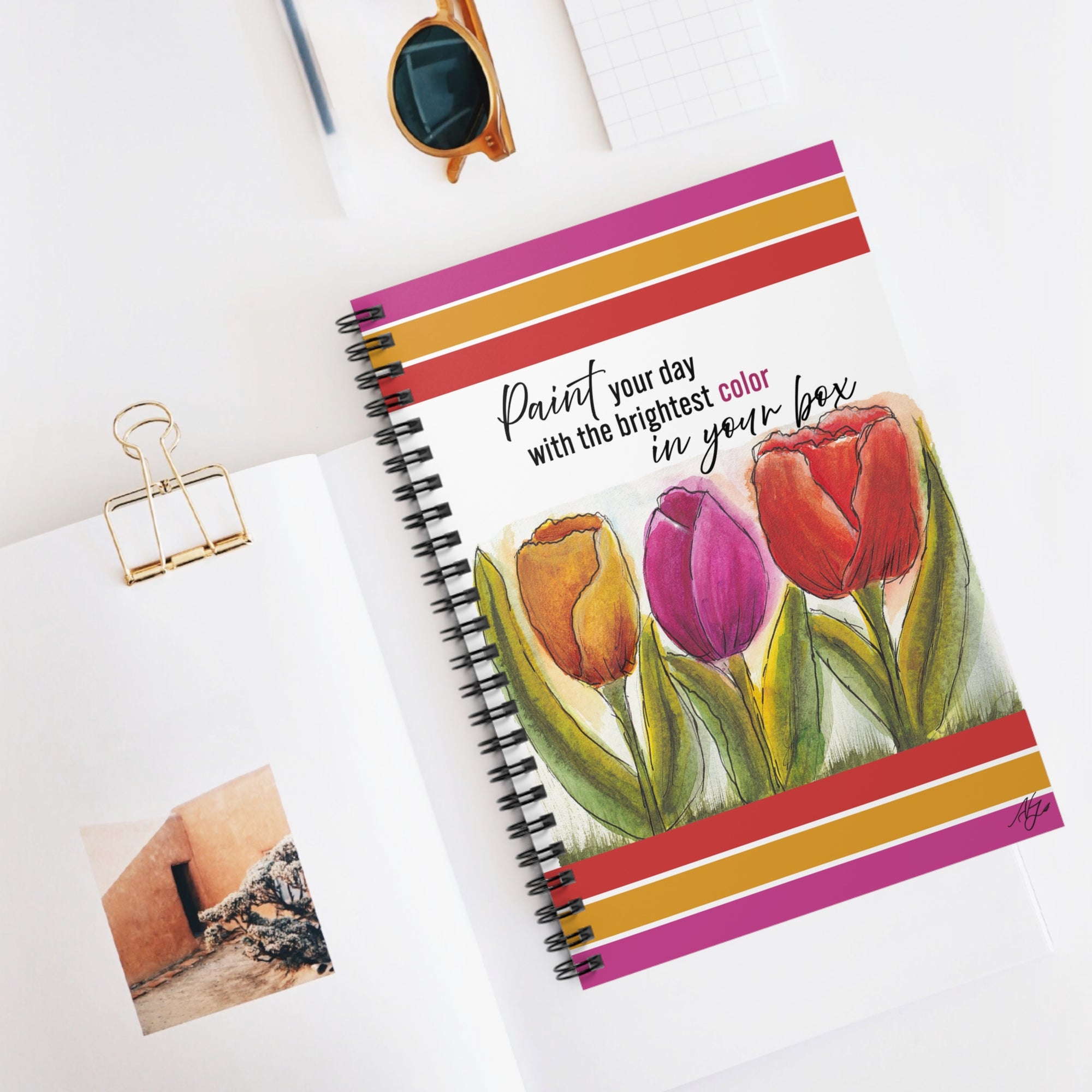 Embrace your creative spirit with this beautifully designed Spiral Notebook. Featuring a vibrant trio of tulips cover, this notebook invites inspiration and joy, making it a perfect companion for anyone who loves to write, sketch, or organize their thoughts.