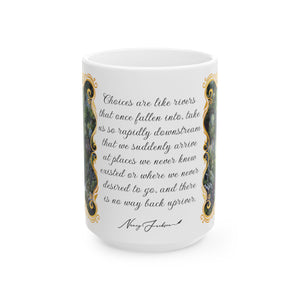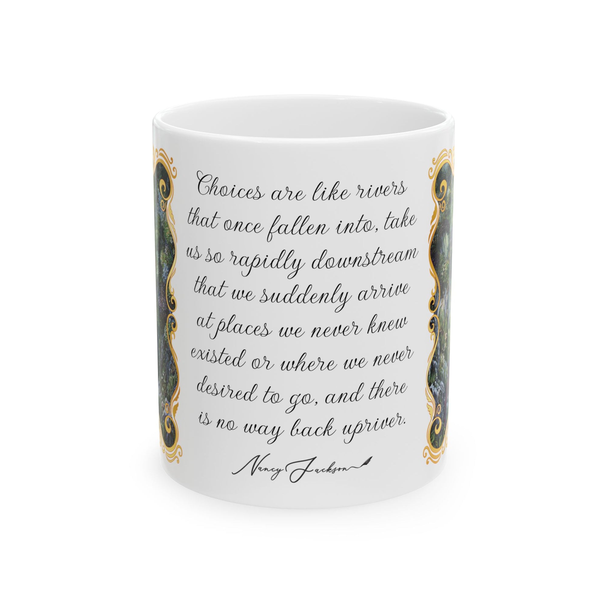 Introducing our beautifully crafted Choices Like Rivers Ceramic Mug, perfect for those who appreciate a touch of elegance in their daily routines.