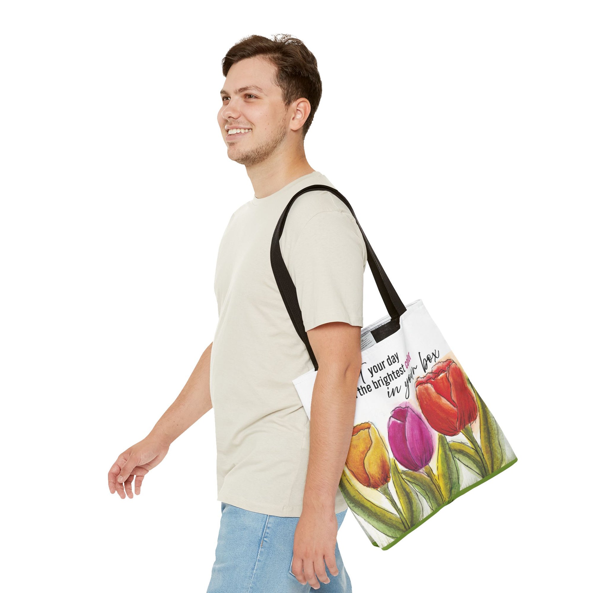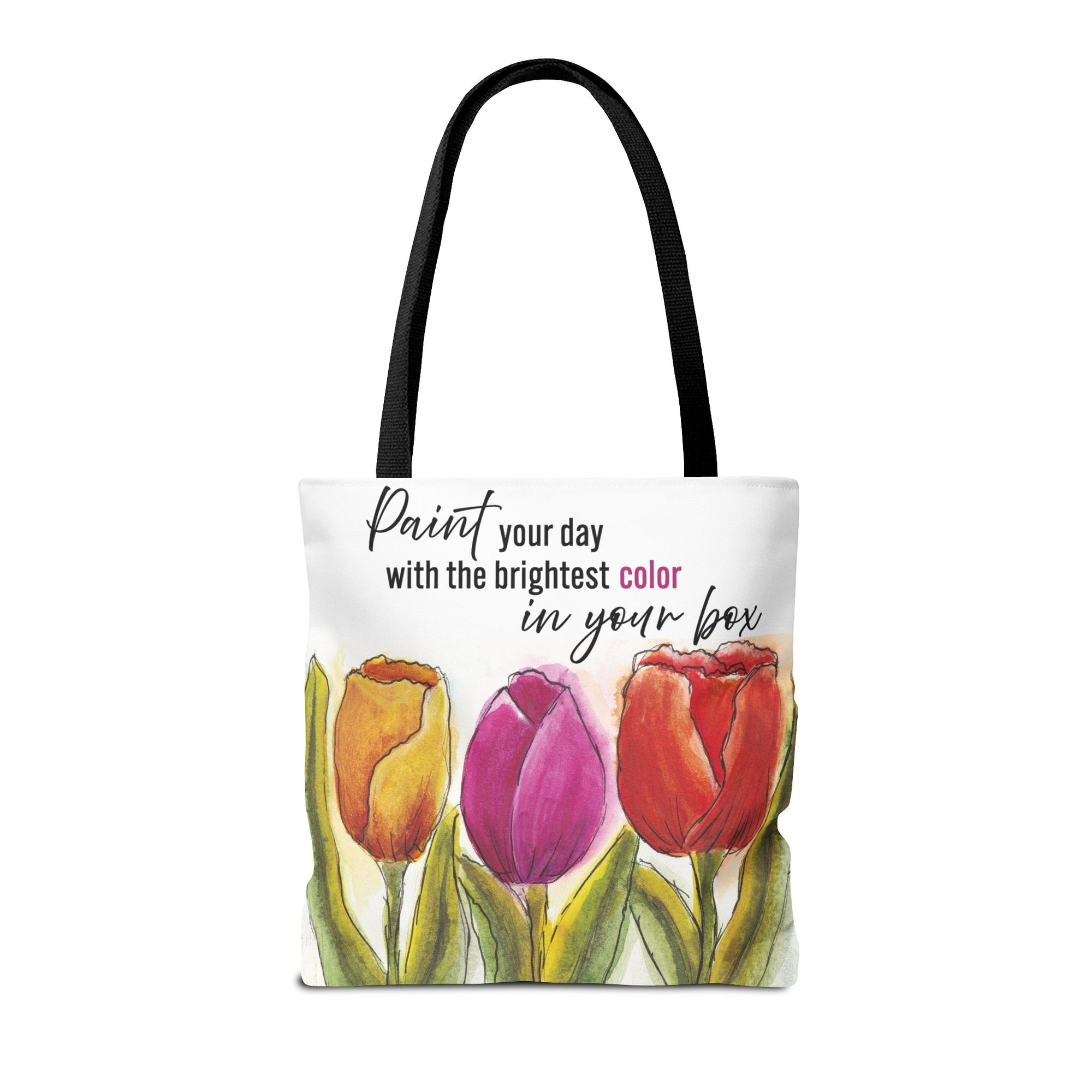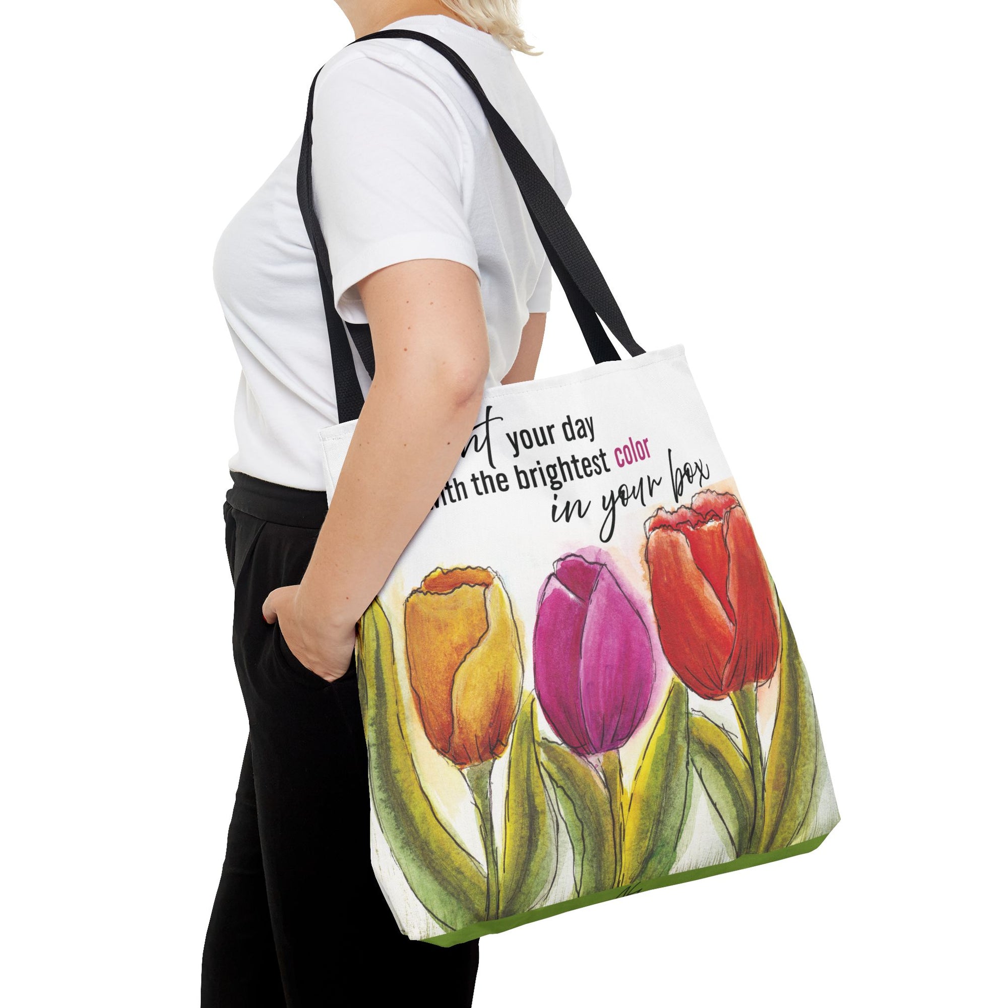 Designer Tote Bag with a Trio of Tulips and a Quote