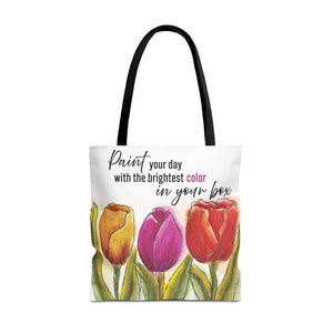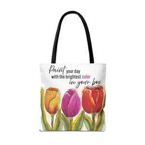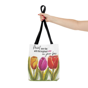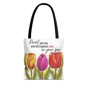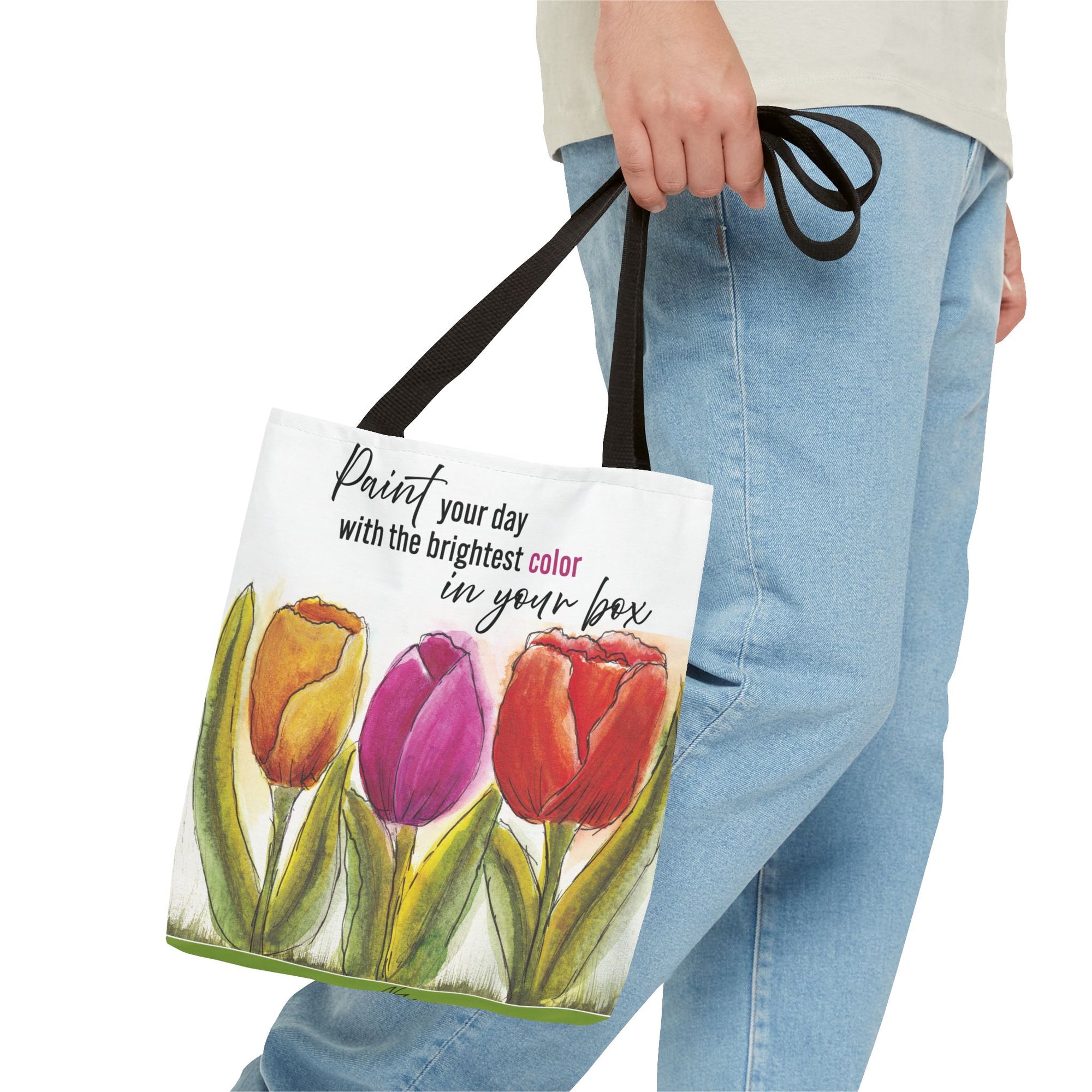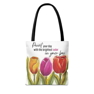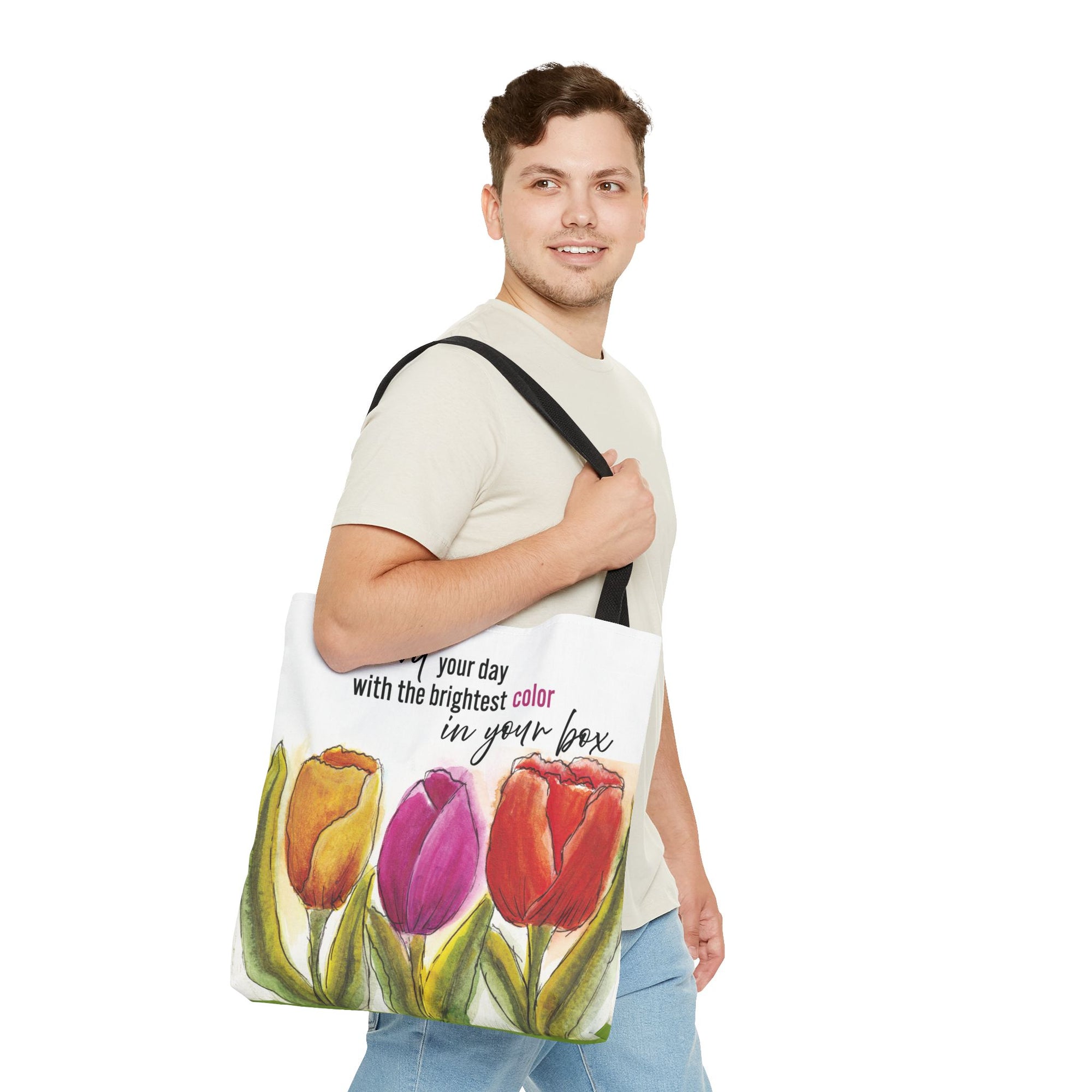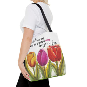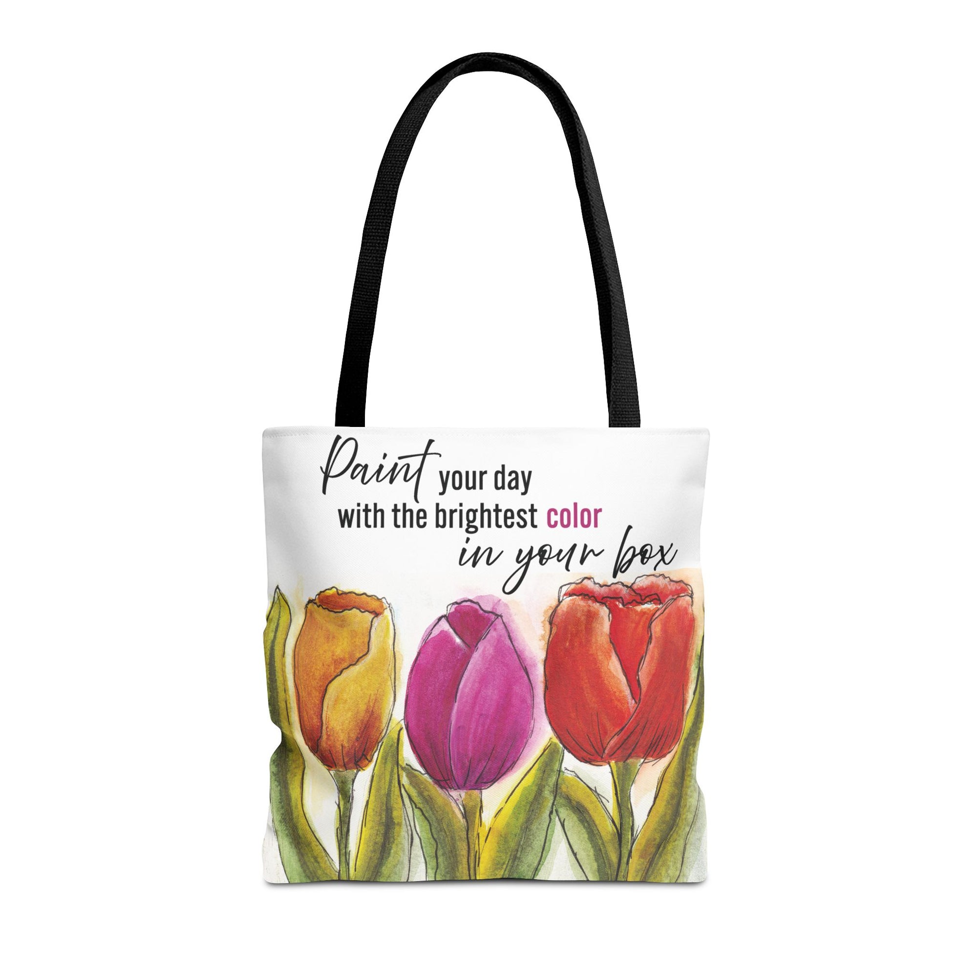 Designer Tote Bag with a Trio of Tulips and a Quote