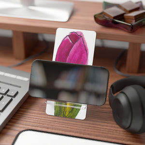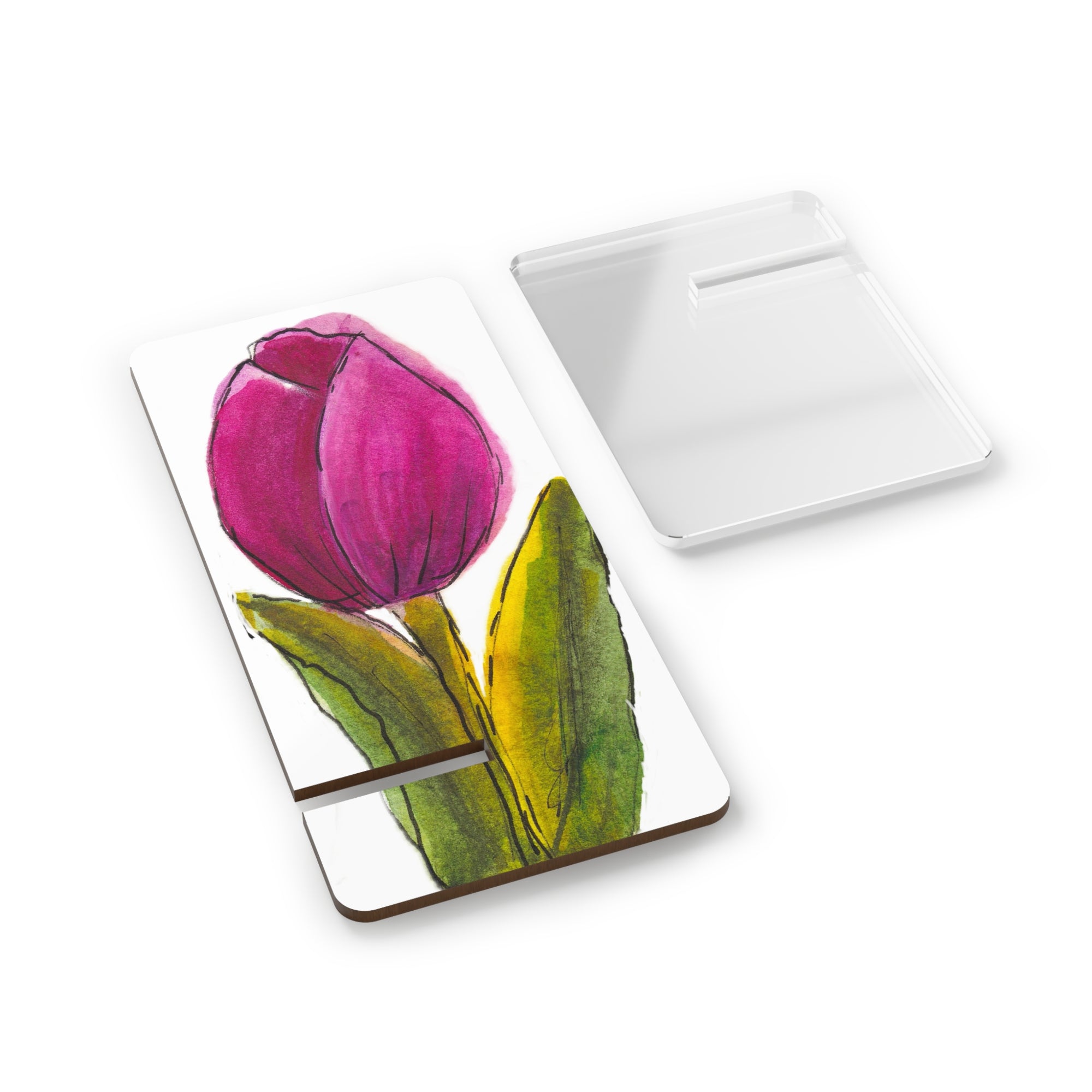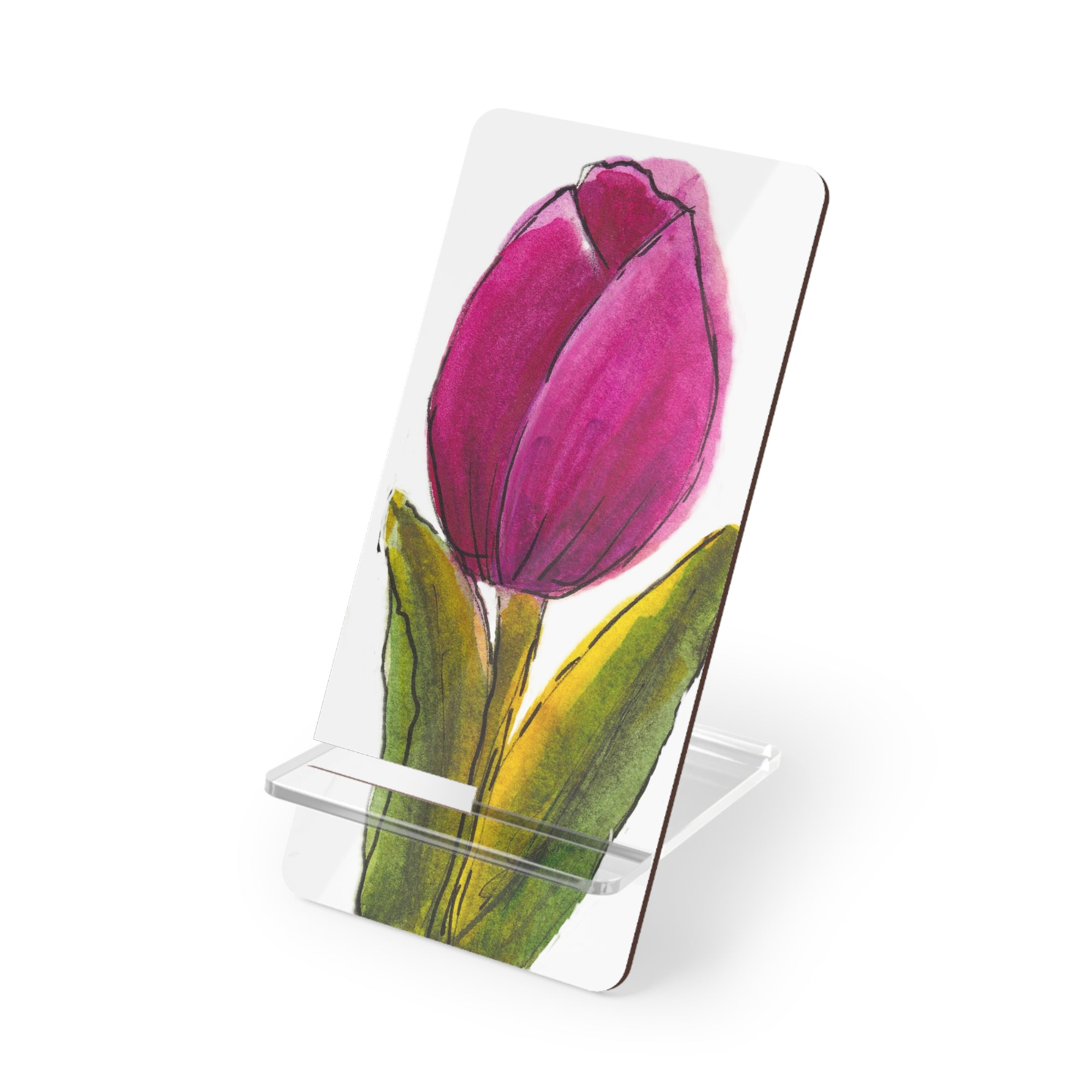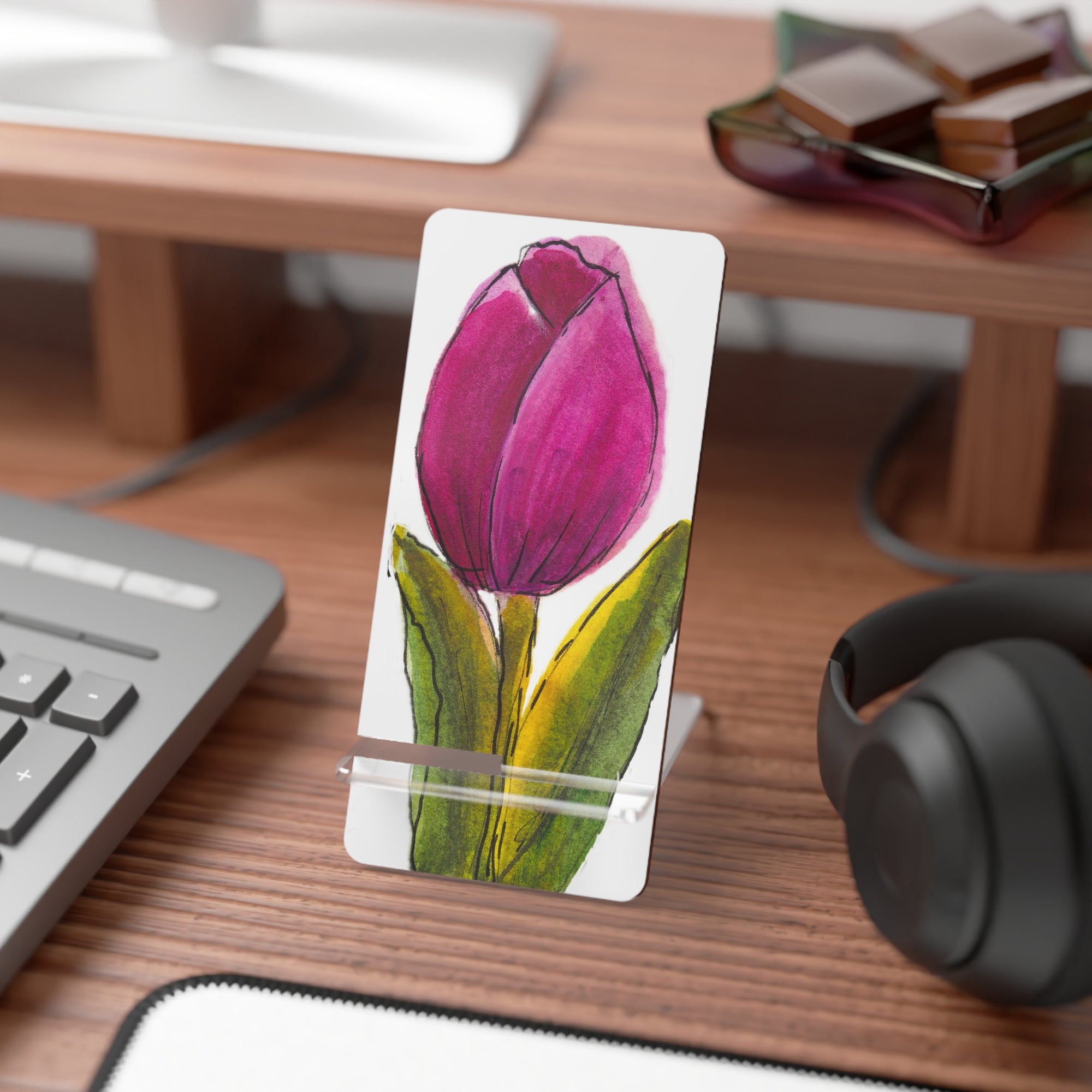 Designer Cell Phone Display Stand with a Bold Magenta Tulip