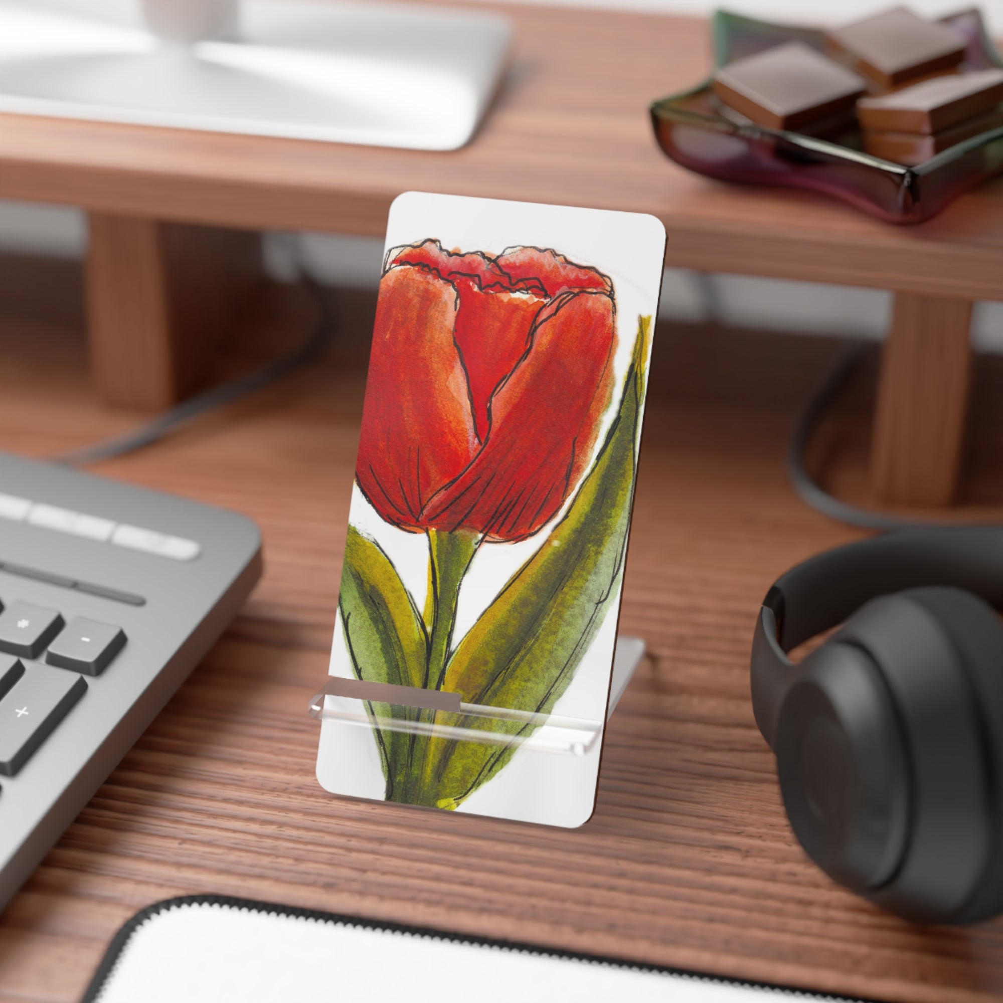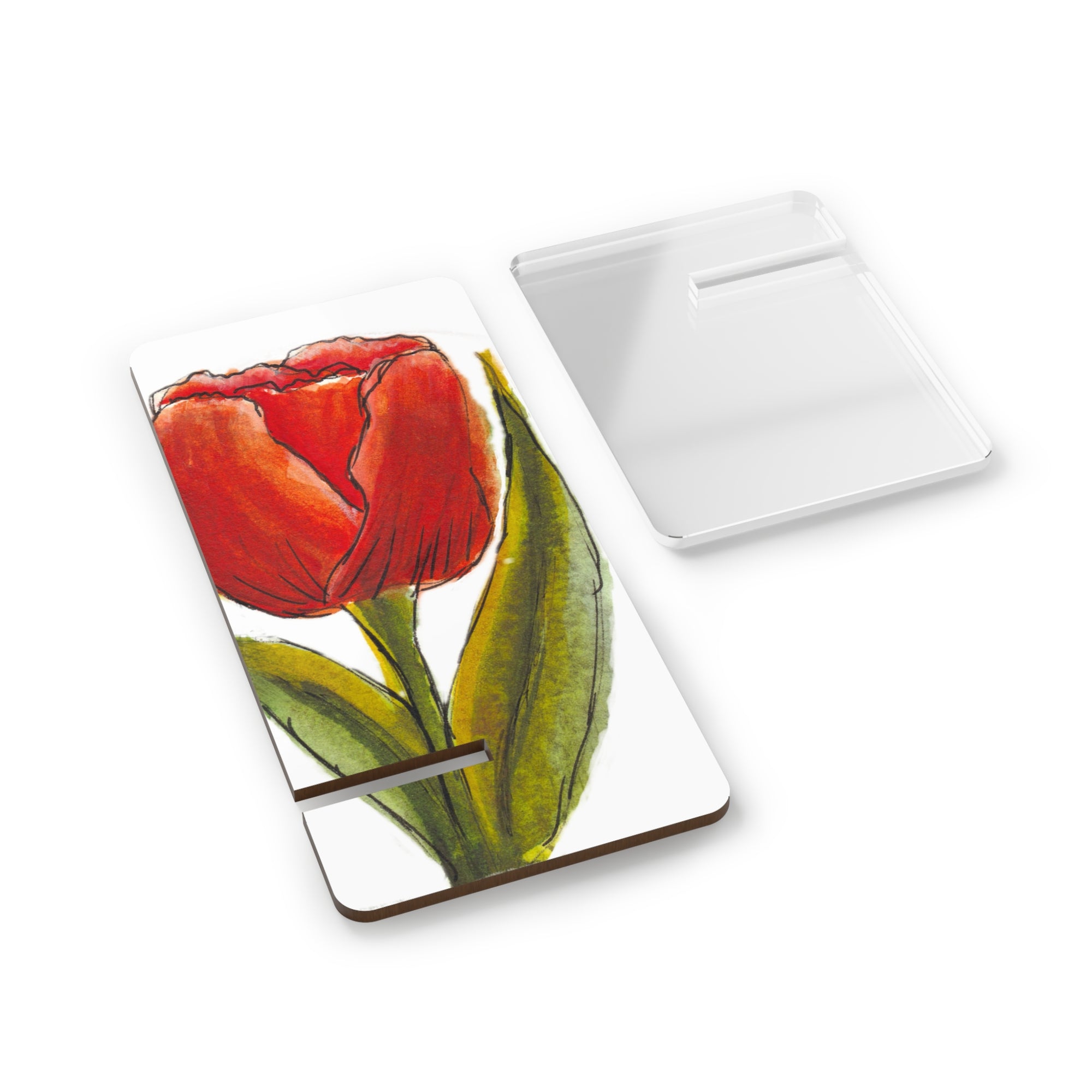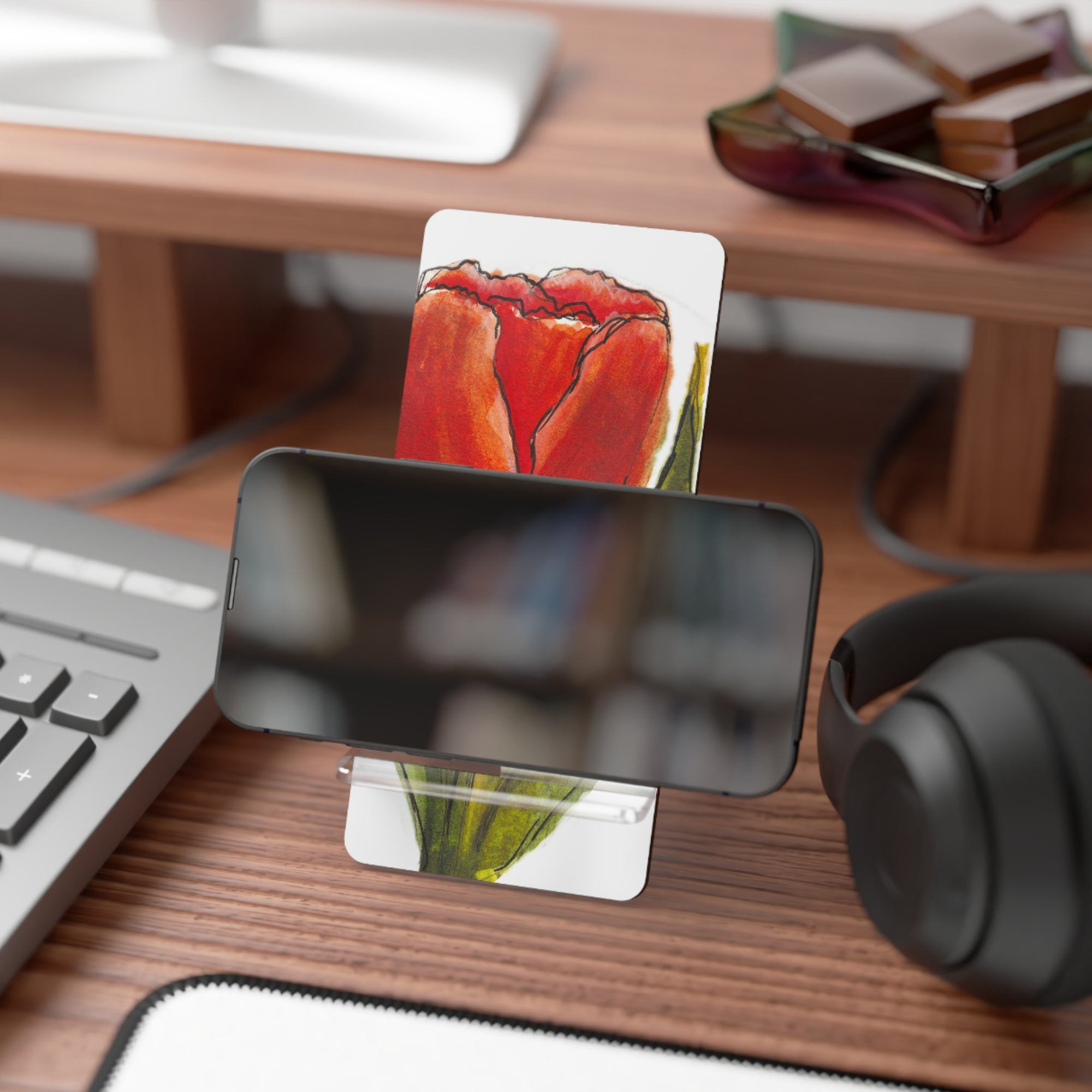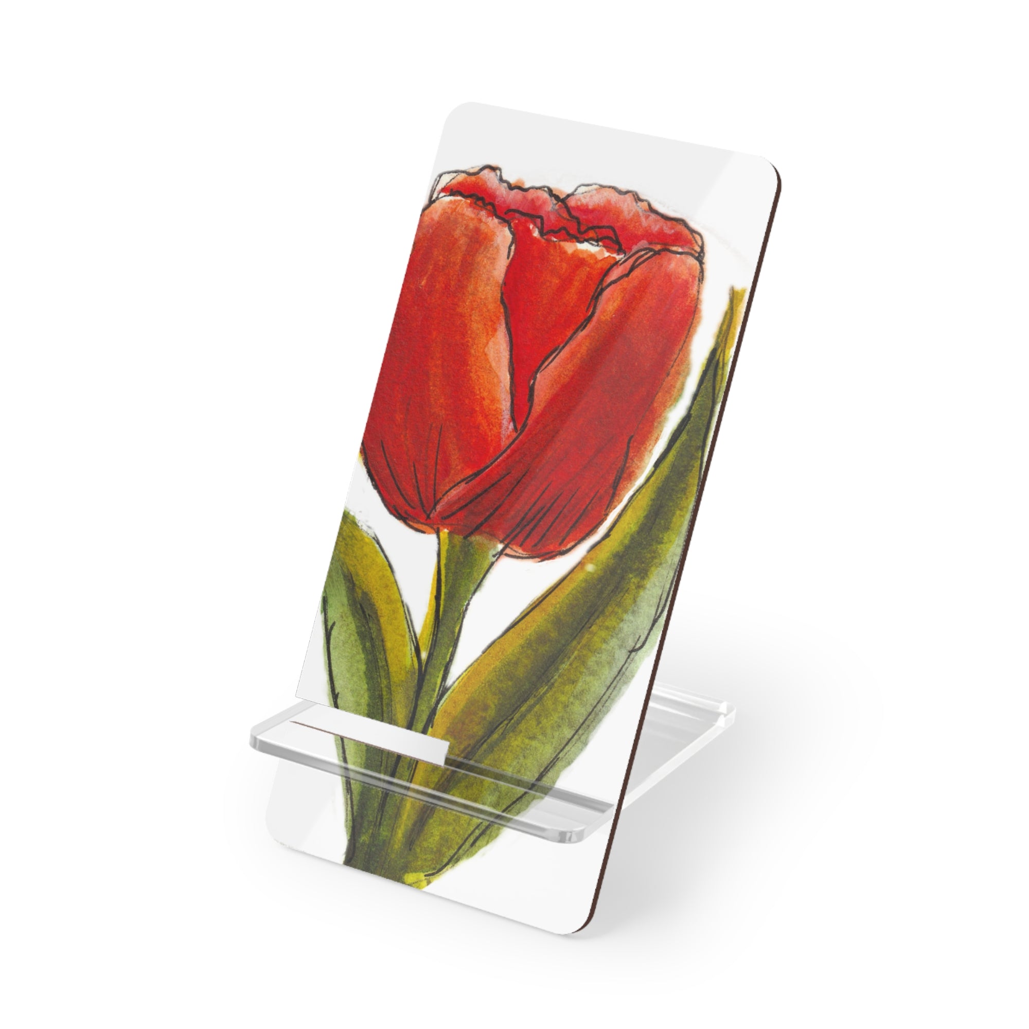 Designer Cell Phone Display Stand with a Bold Orange Tulips