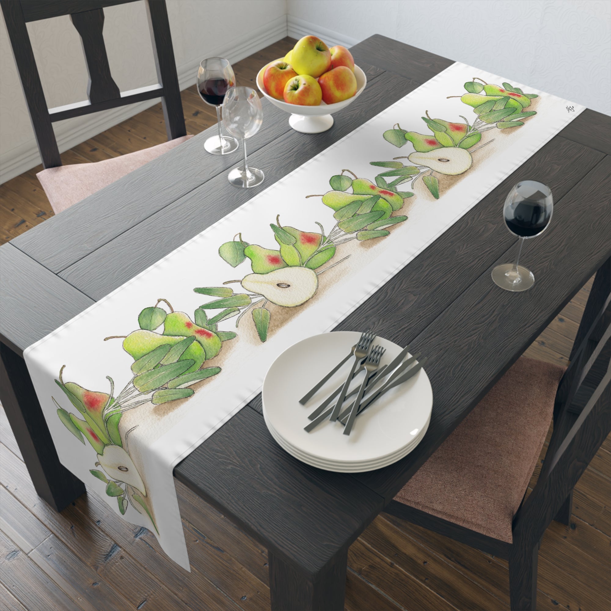Elevate your dining experience with this beautifully designed table runner. Featuring a charming pear motif, this runner adds a touch of nature to your table setting, creating a warm and inviting atmosphere for your meals. Perfect for family dinners, holiday gatherings, or casual brunches, it invites conversation and complements a variety of decor styles.