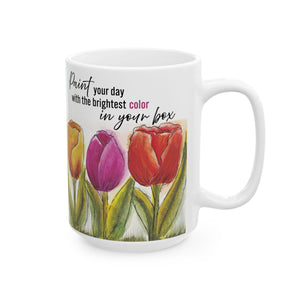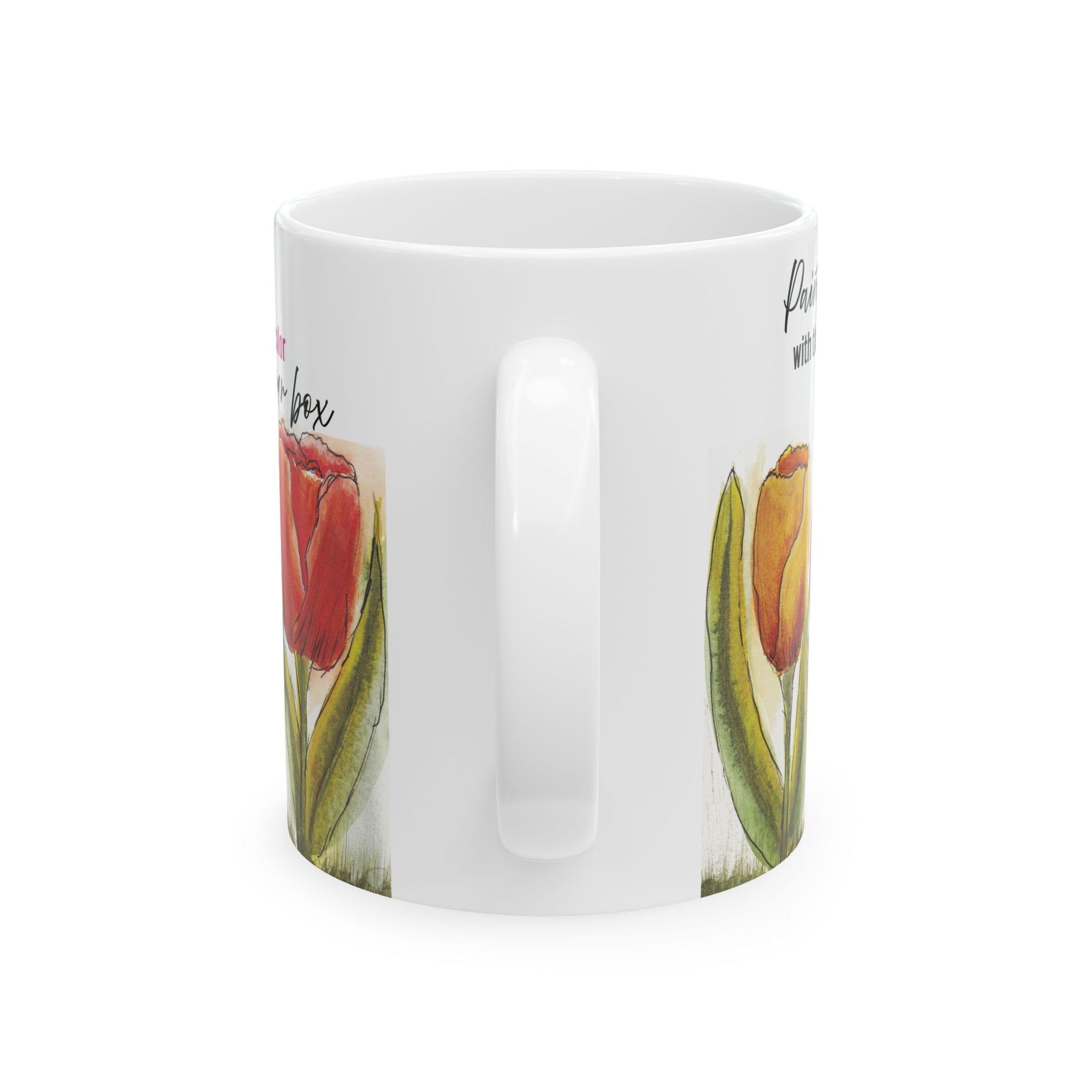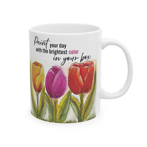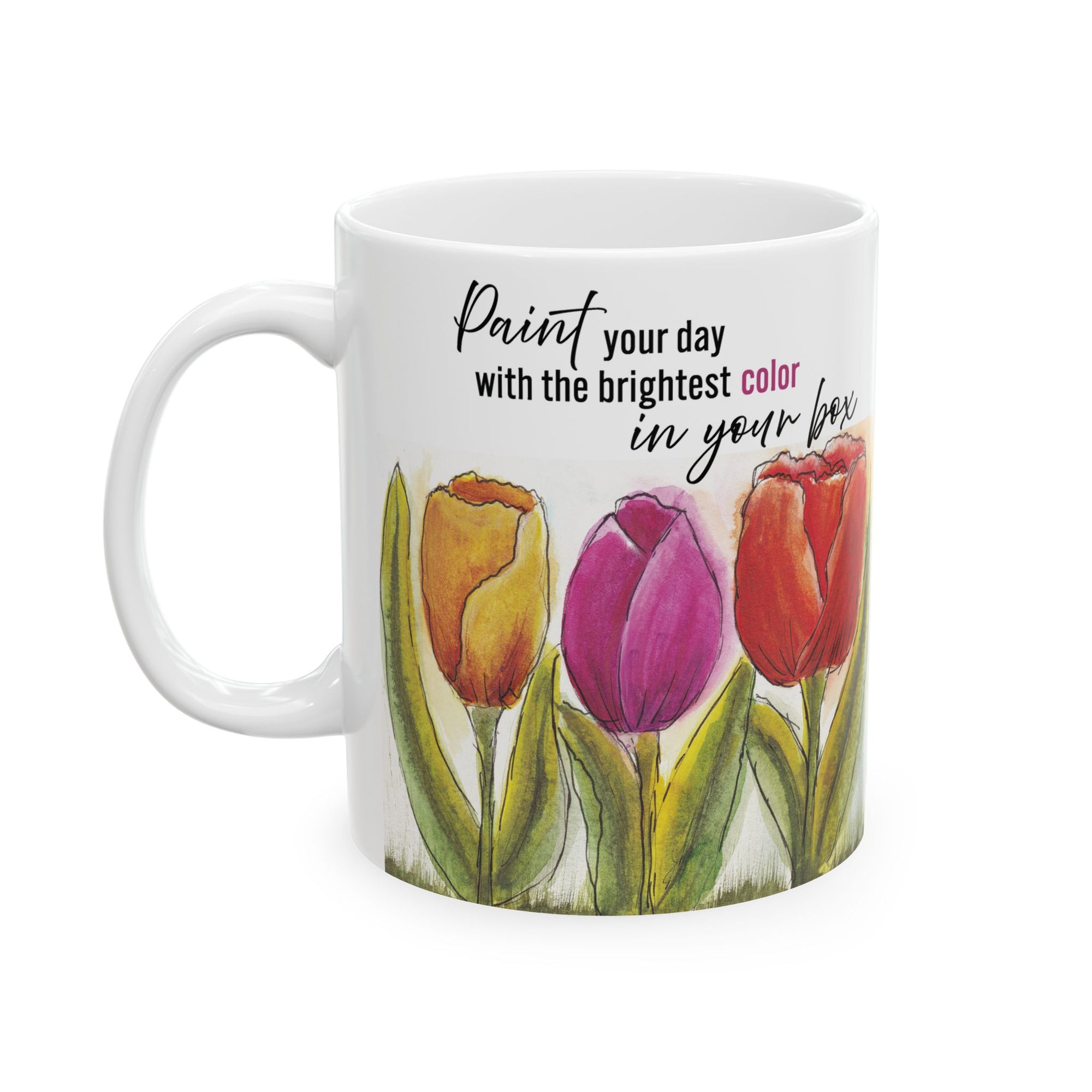 Designer Floral Ceramic Mug with a Trio of Tulips