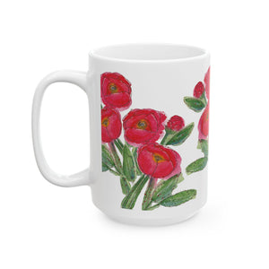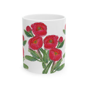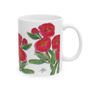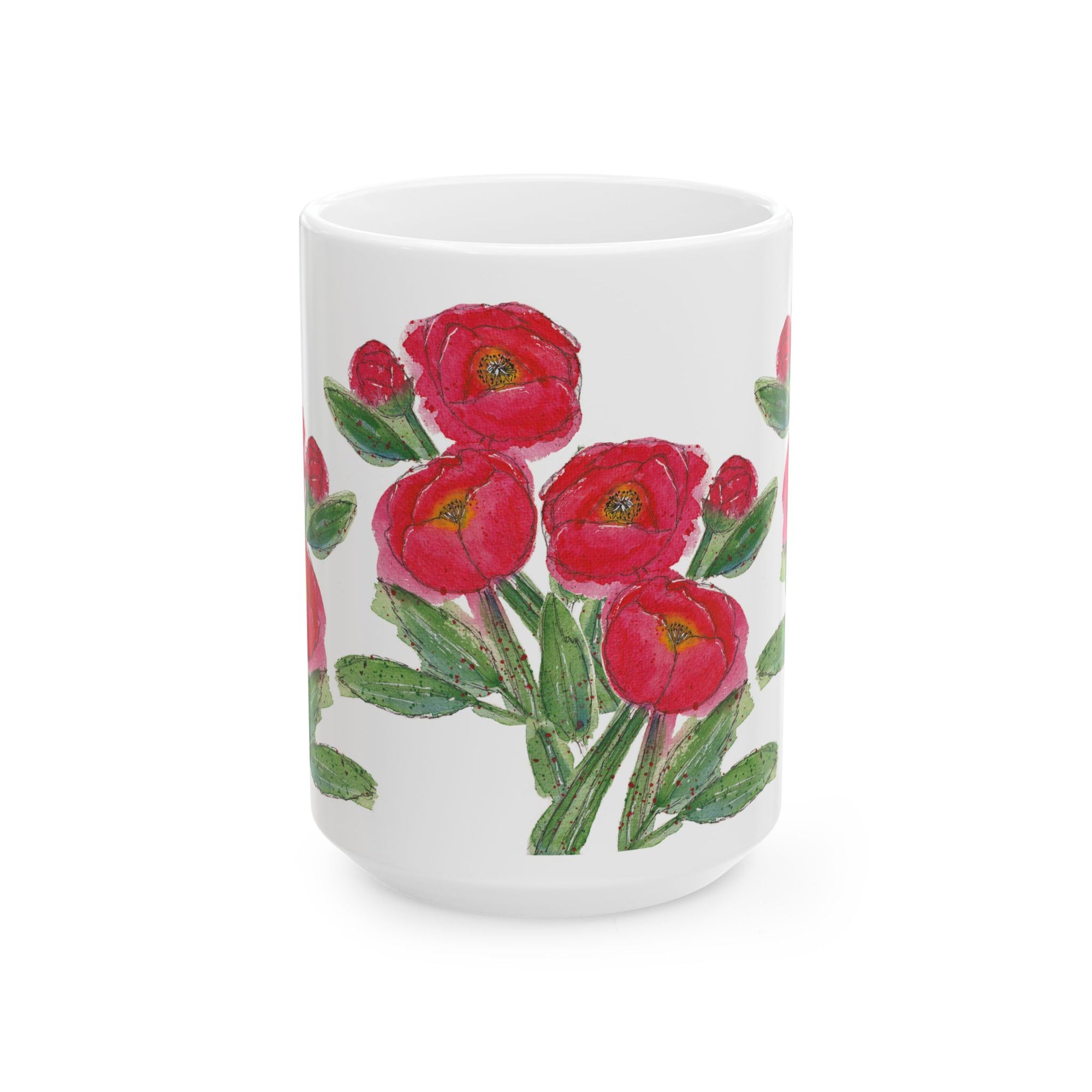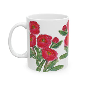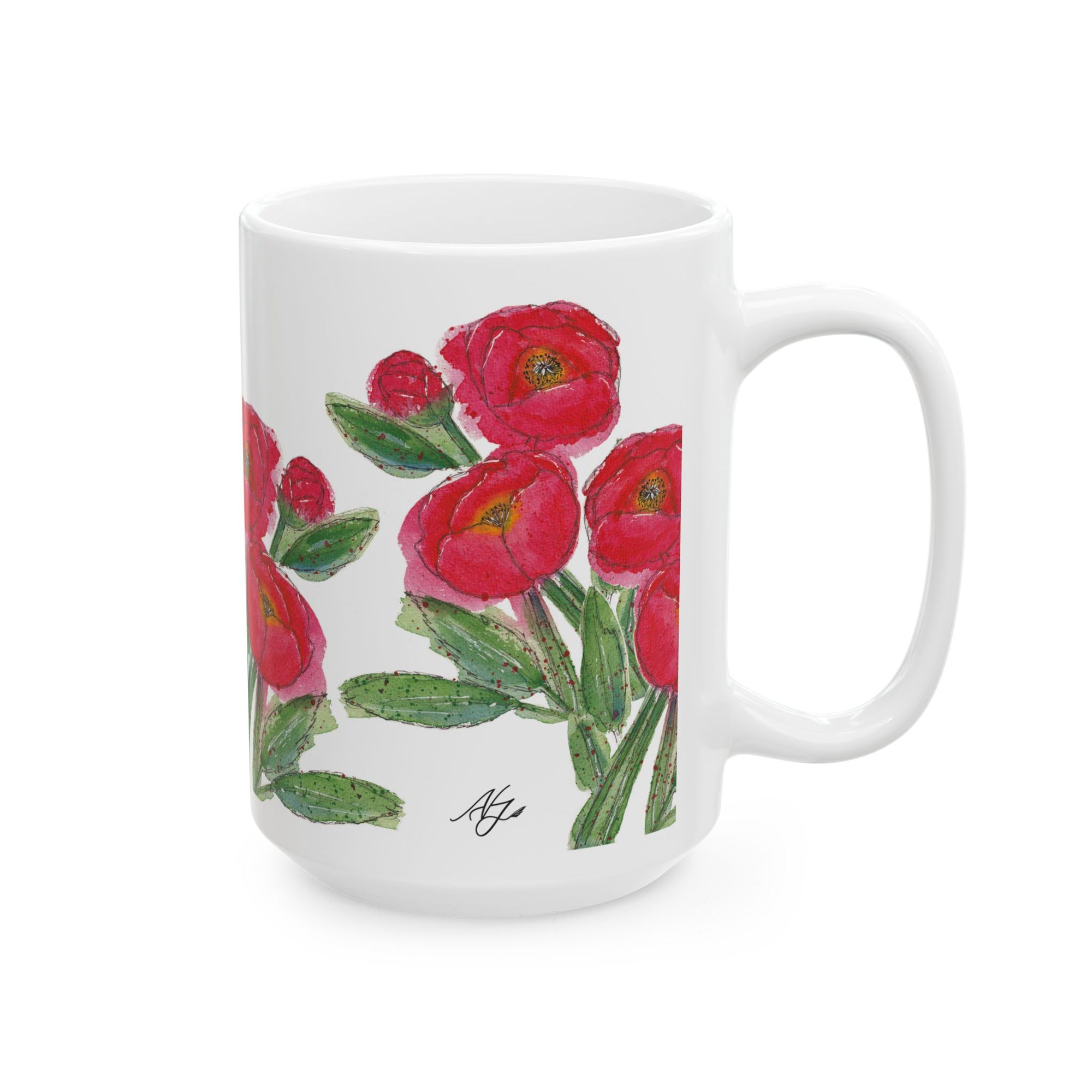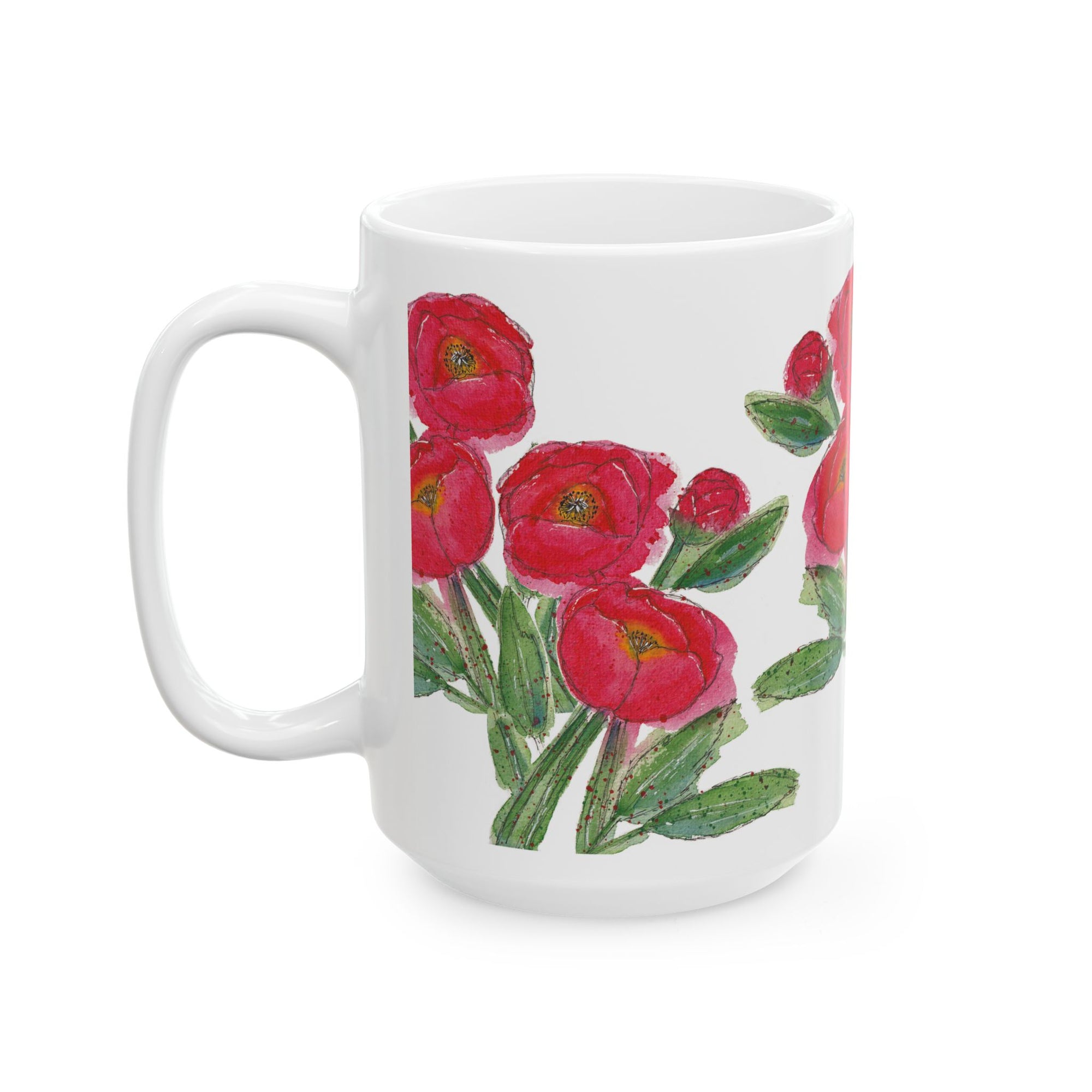 Designer Floral Ceramic Mug with Vibrant Red Poppies