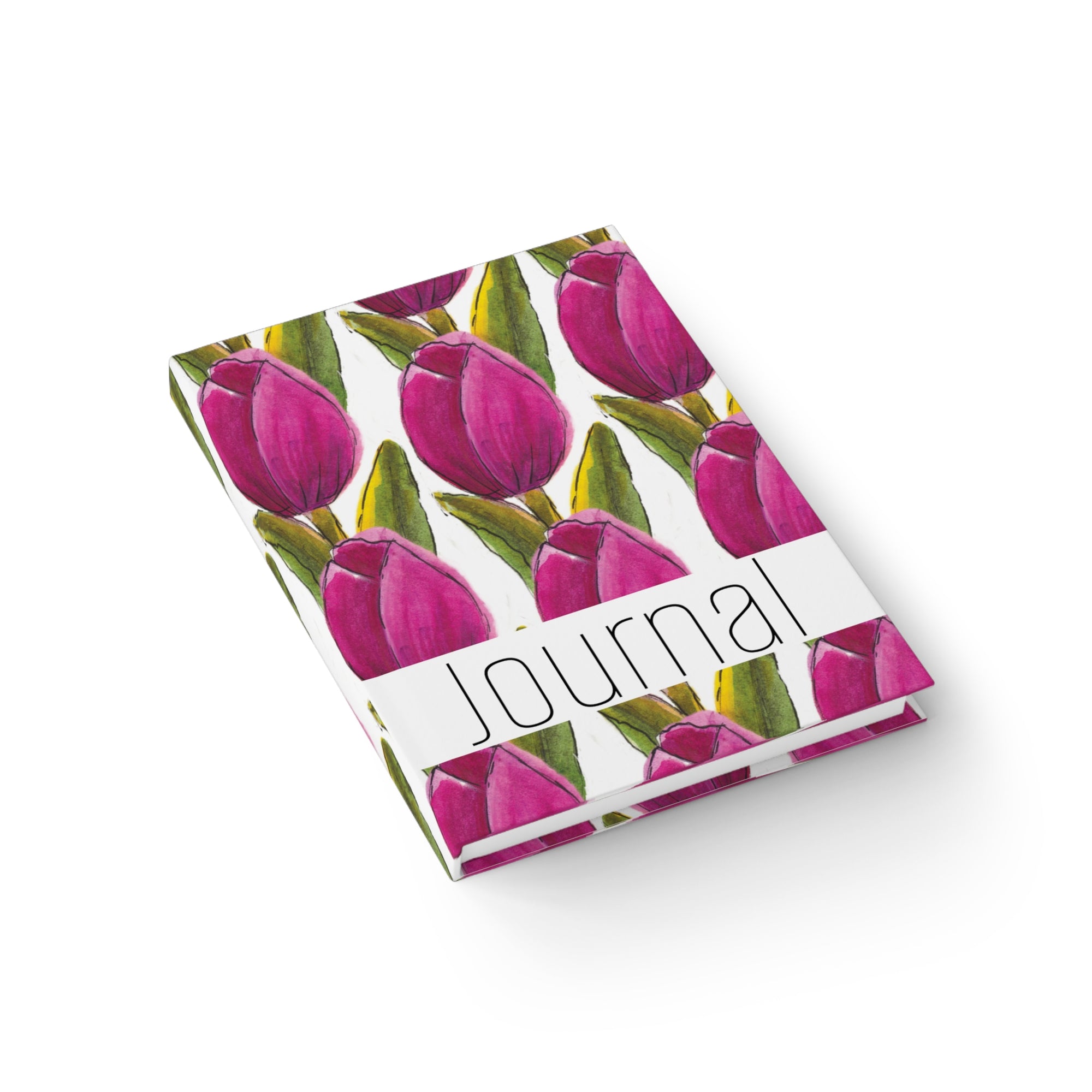 Designer Hardcover Floral Journal with Bold Magenta Tulips