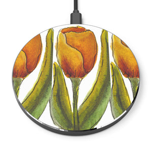 Designer Wireless Charger for Fast Charging with Bold Yellow Tulips