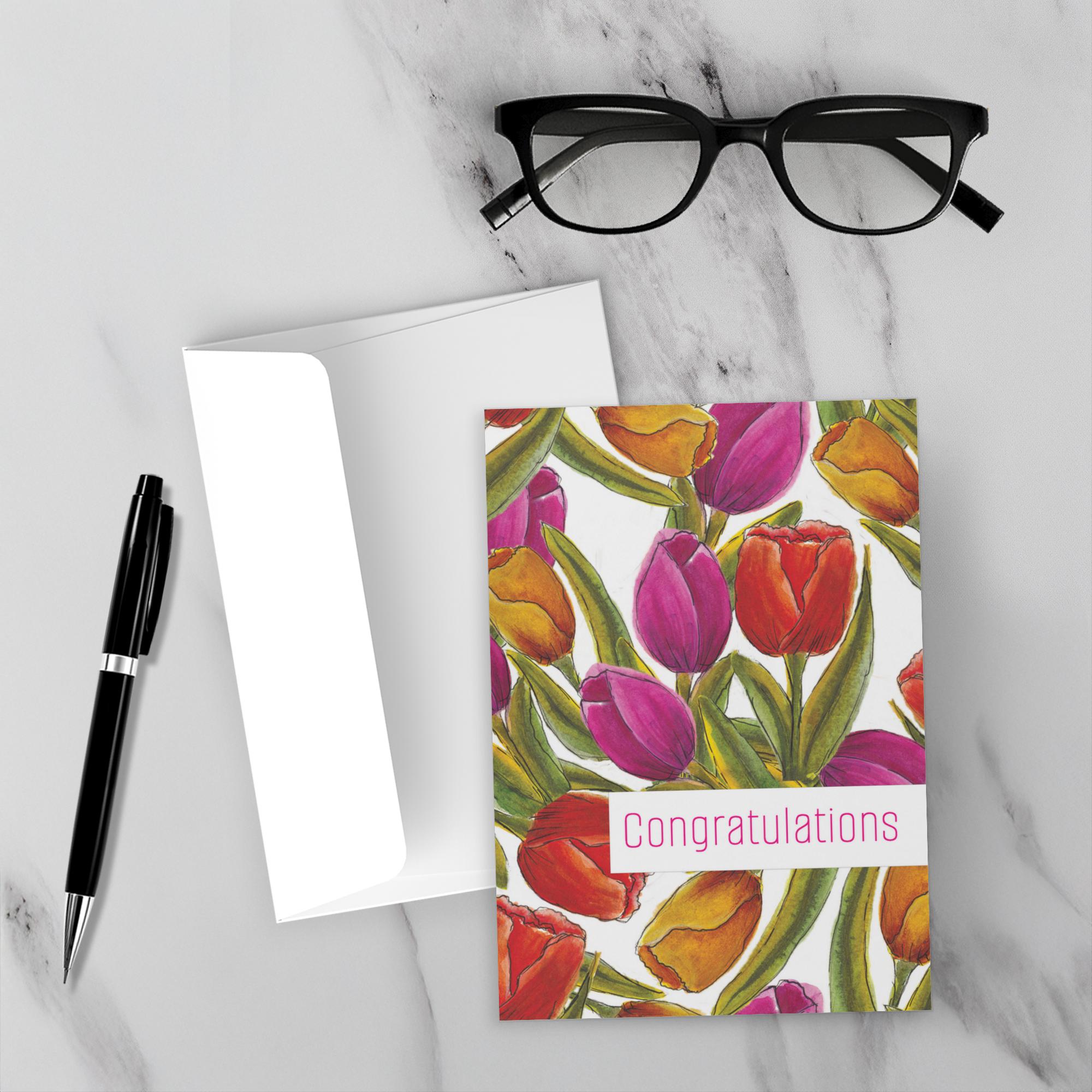 Folded Card - Random Tulips - Congratulations