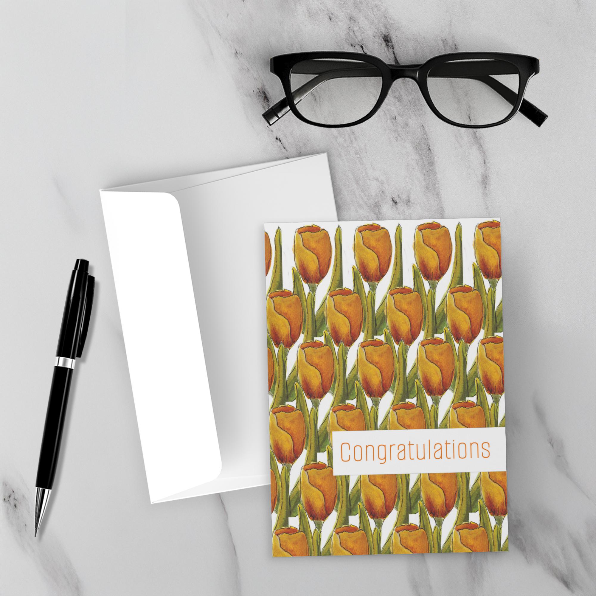 These high quality paper cards come pre-folded, packed in cello sleeves per 5 cards, and includes a white envelope for each card. Works well with regular ballpoint pens after short drying time.